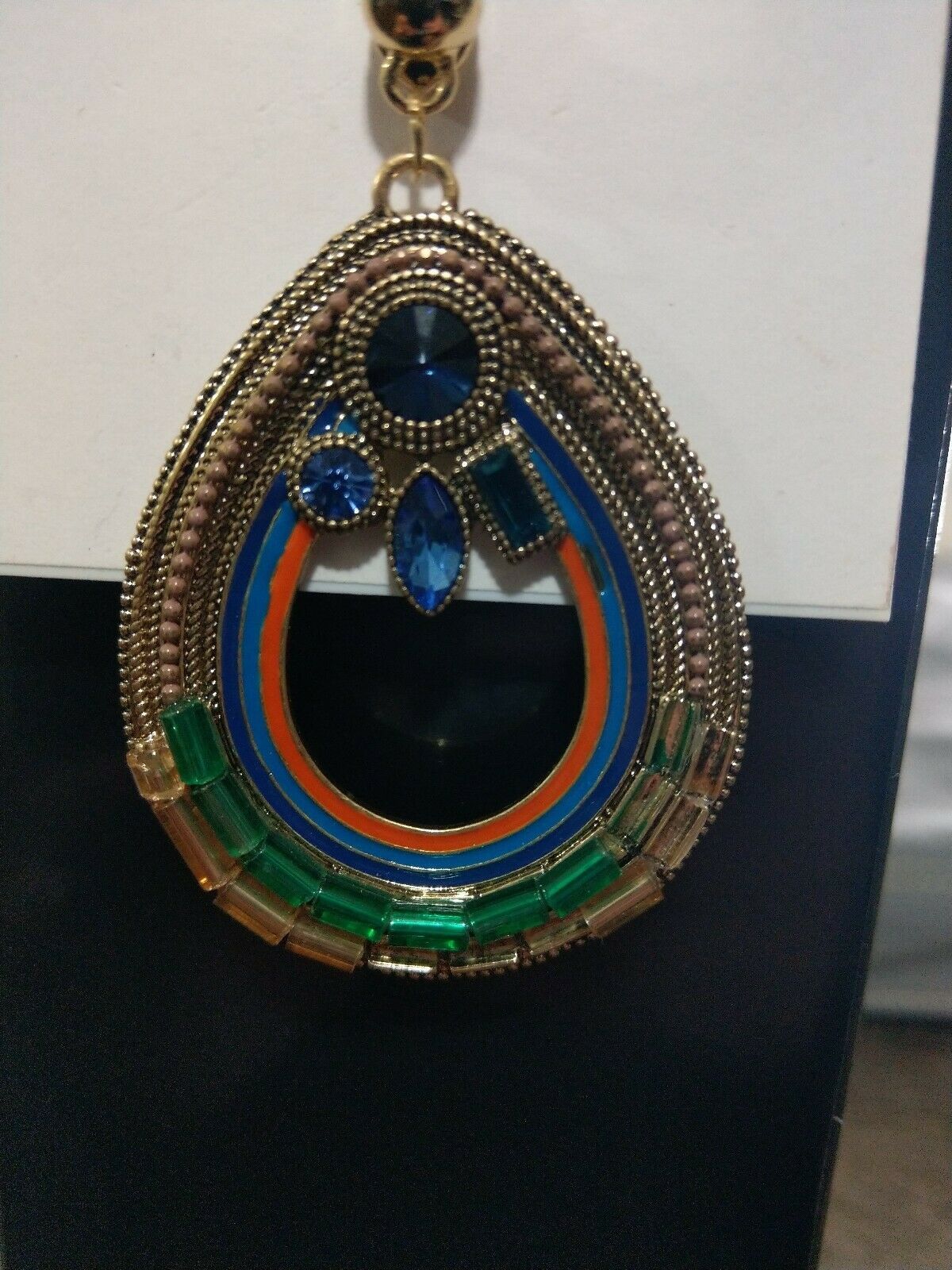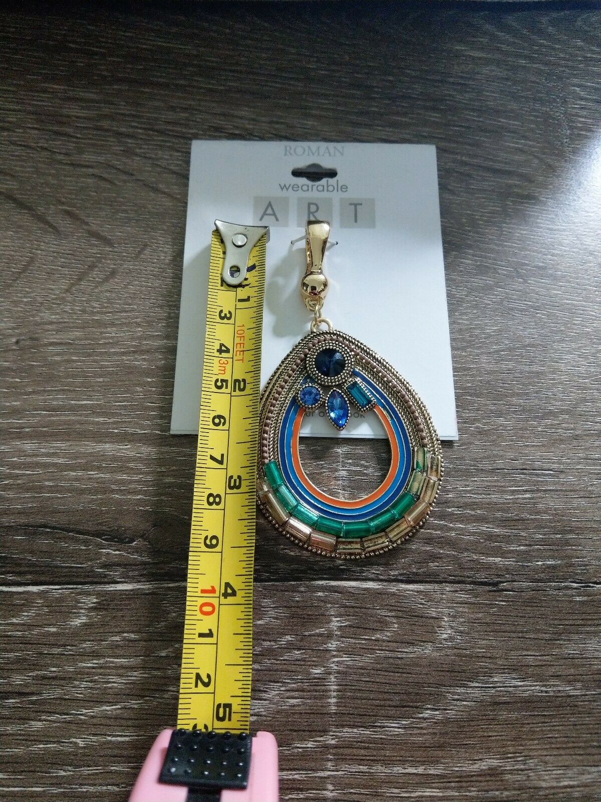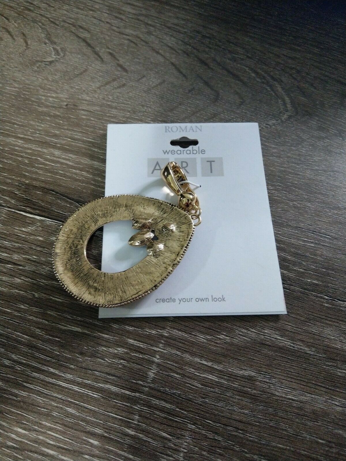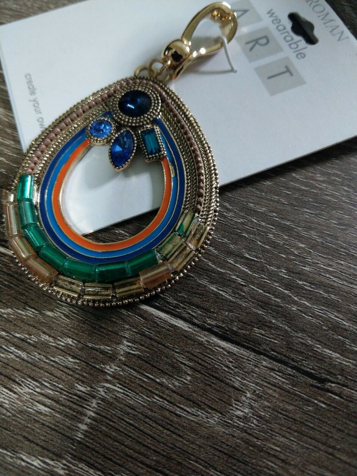 Wearable art by roman, Pendant Gold, Blue, Green. Missing a few Gems. Condition is New with tags. Shipped with USPS First Class Package within 24 hours.