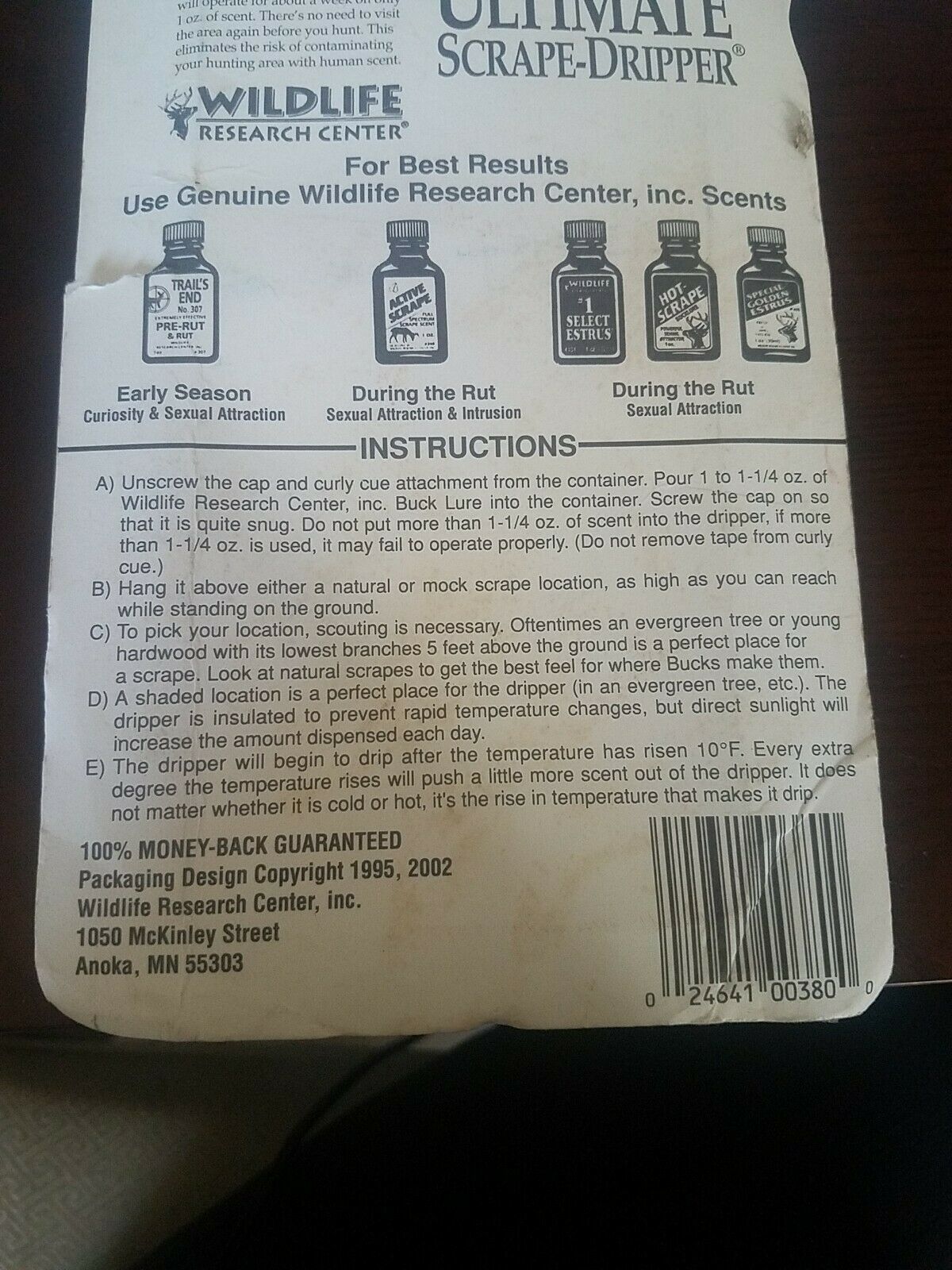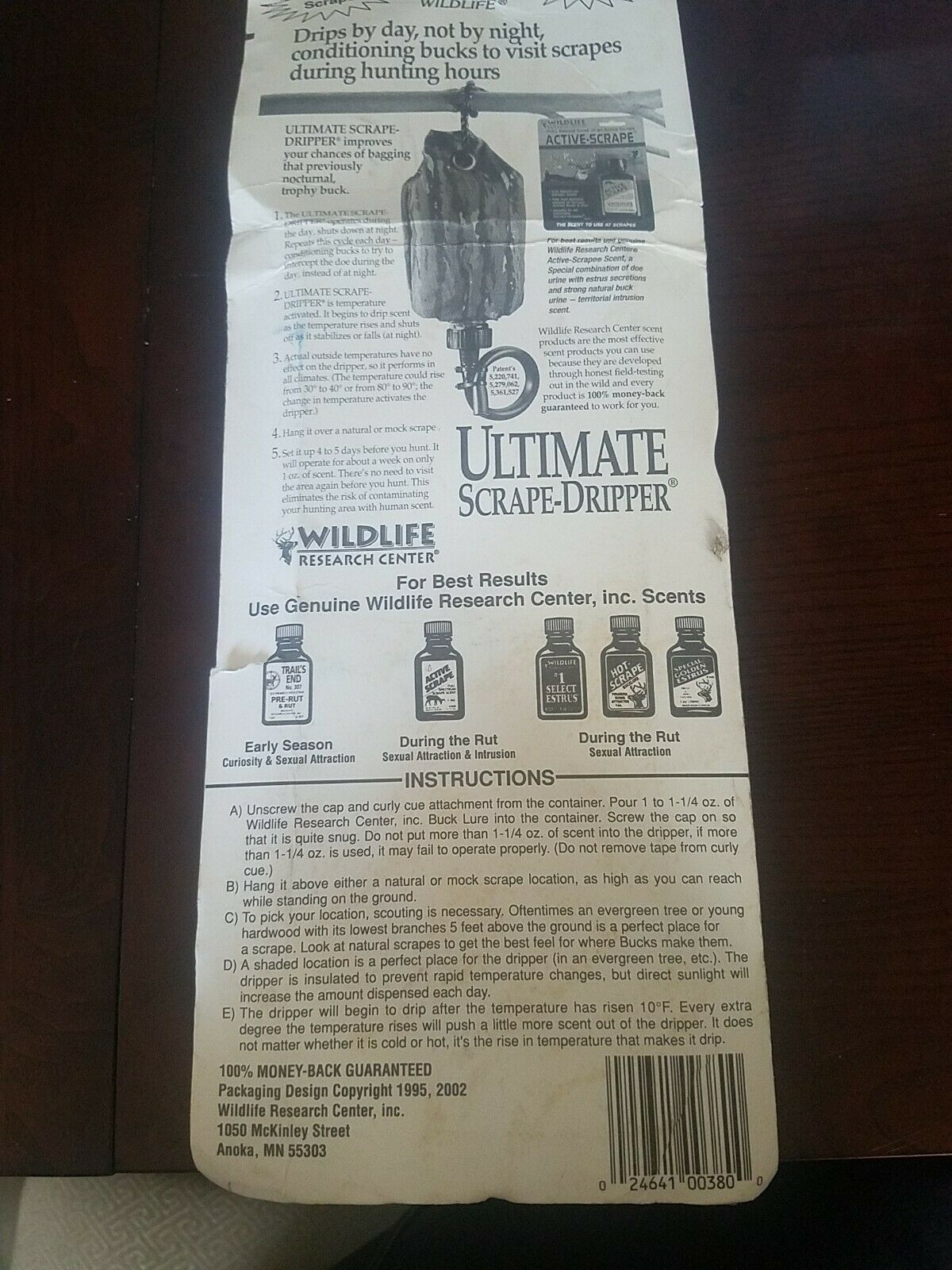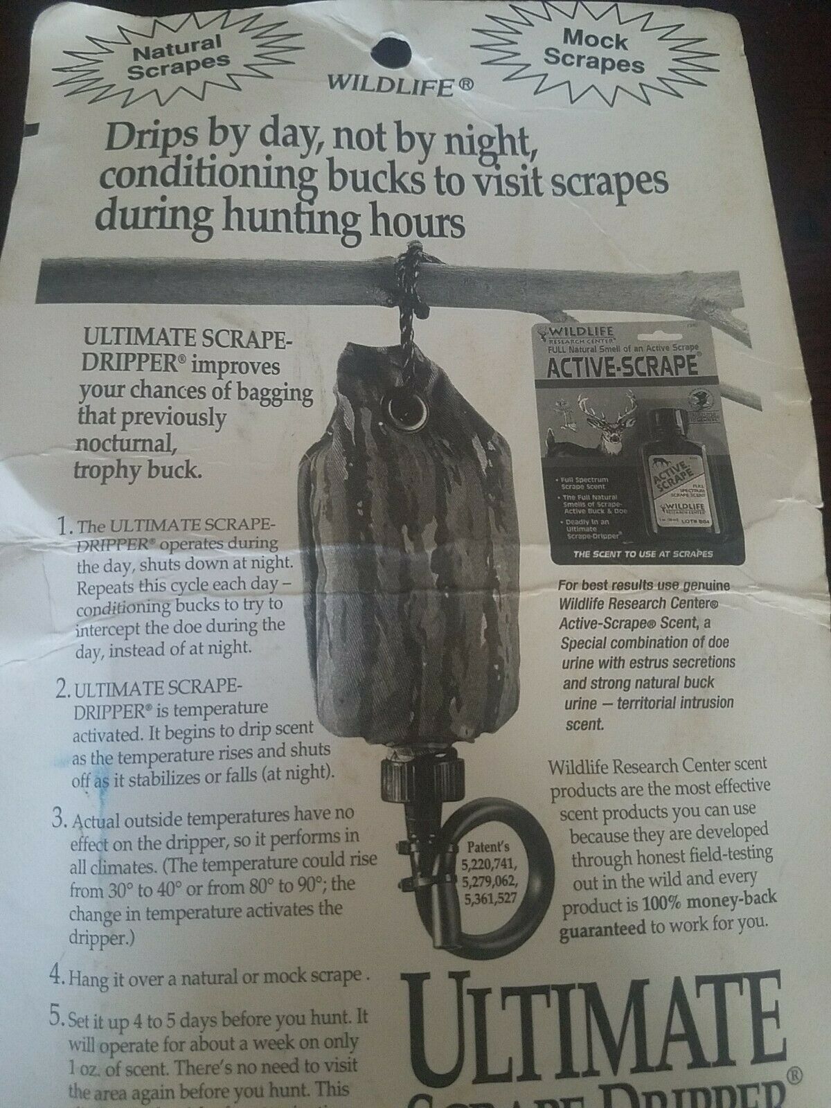 Wildlife Research Center Scent Holder Ultimate Scrape Dripper Glass Camo Daytime. Box is older and has some openings and is damaged but product is new Condition is "New". Shipped with USPS inventory box number 621