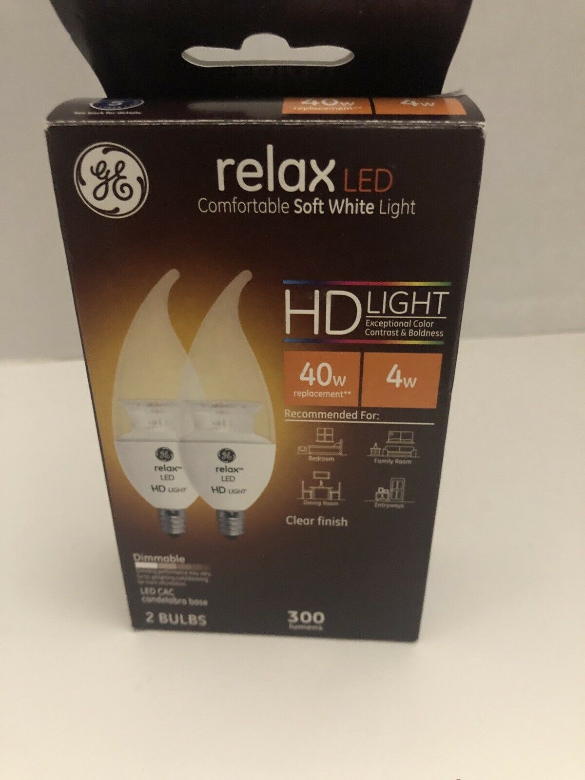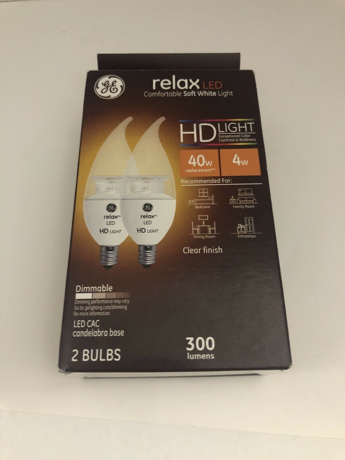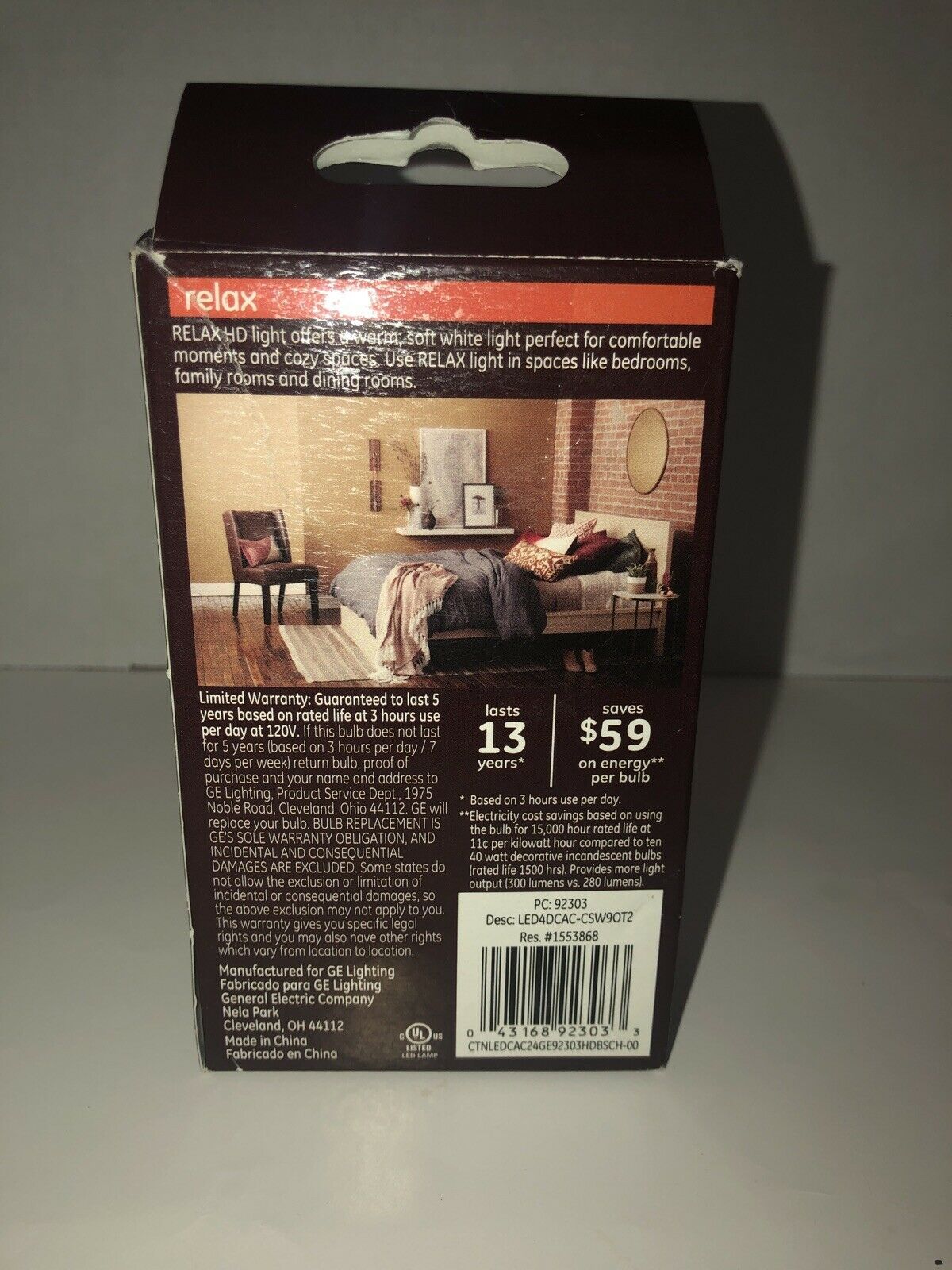 New GE LED Relax HD Light 4 Watt 40 Watt Dimmable Candelabra Base SHIPS N 24HR