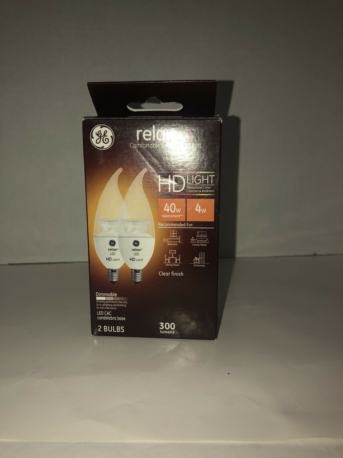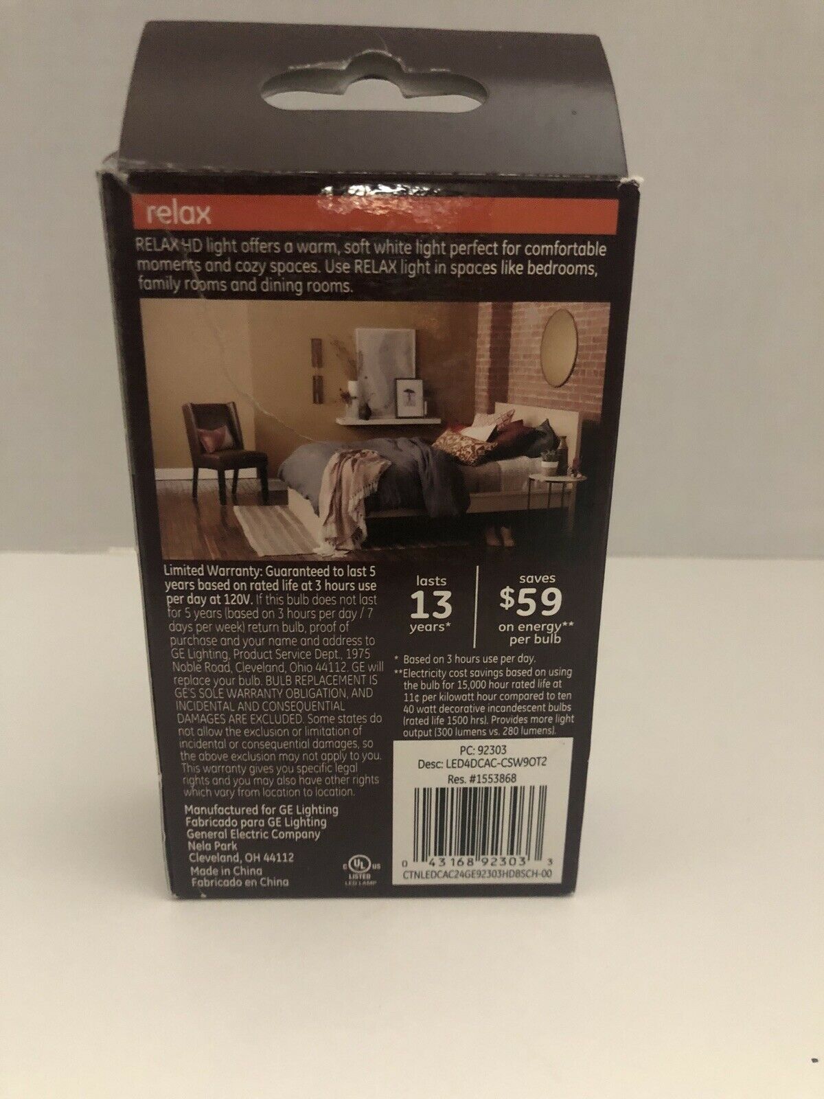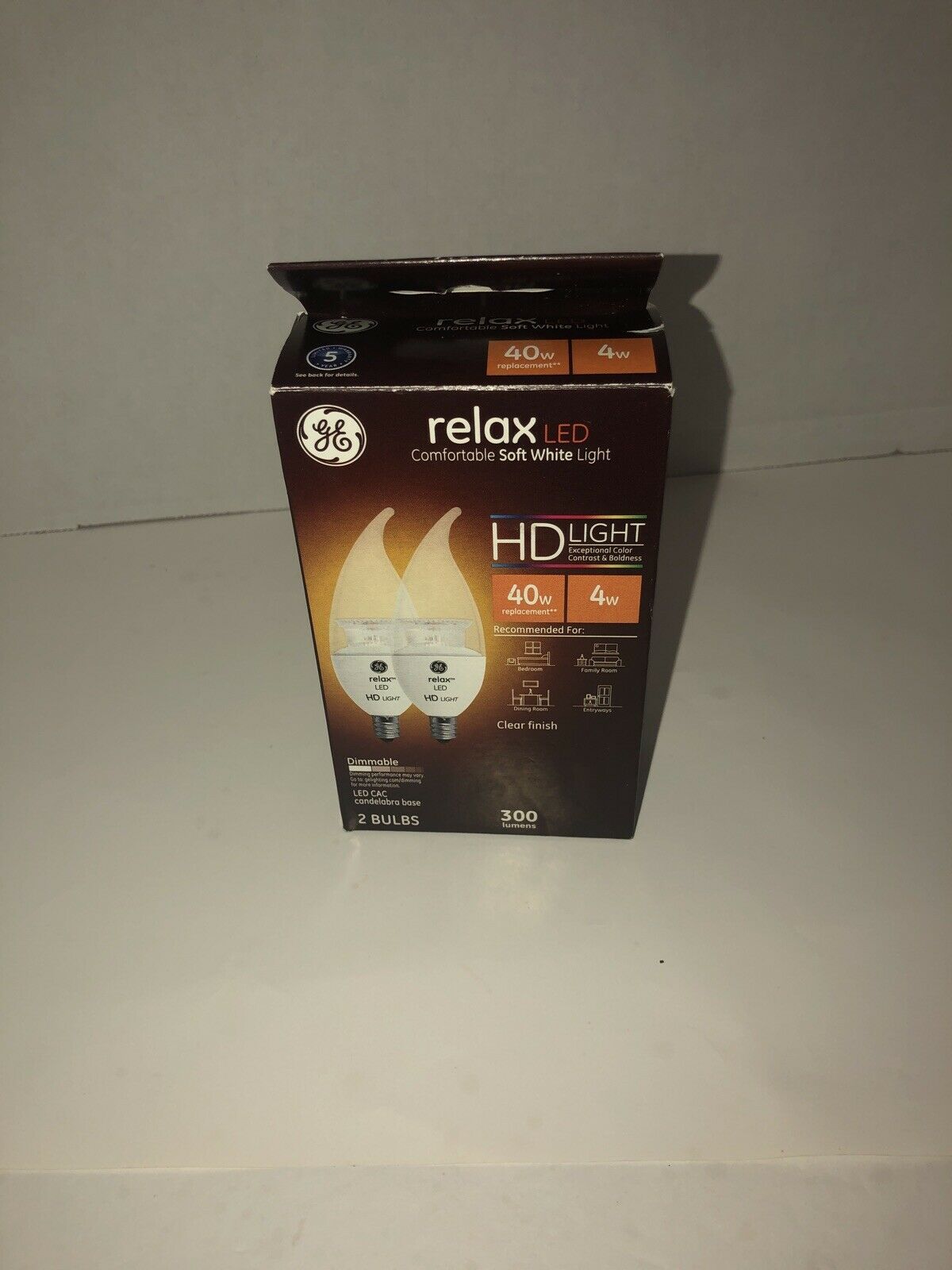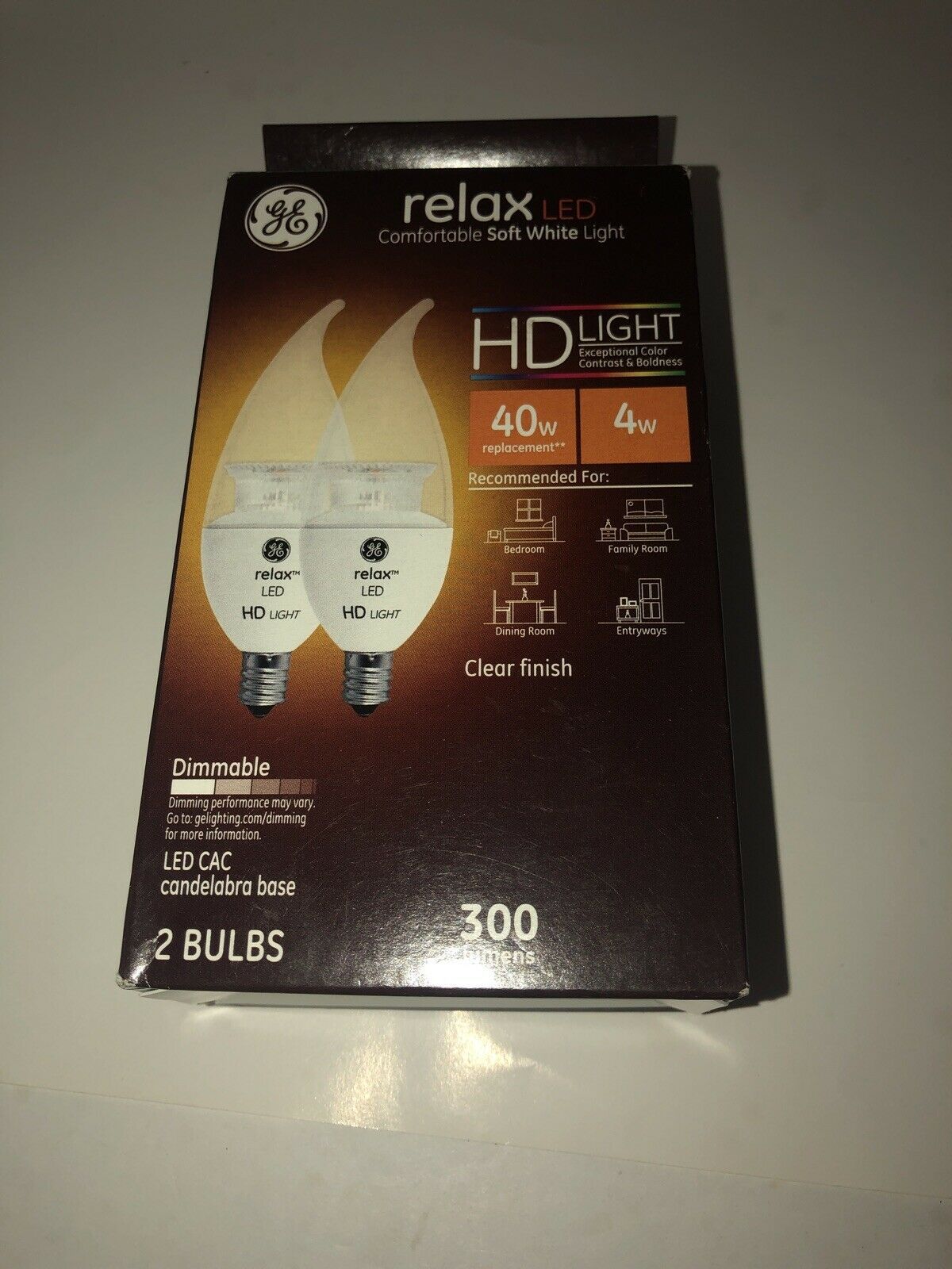 New GE LED Relax HD Light 4 Watt 40 Watt Dimmable Candelabra Base SHIPS N 24HR