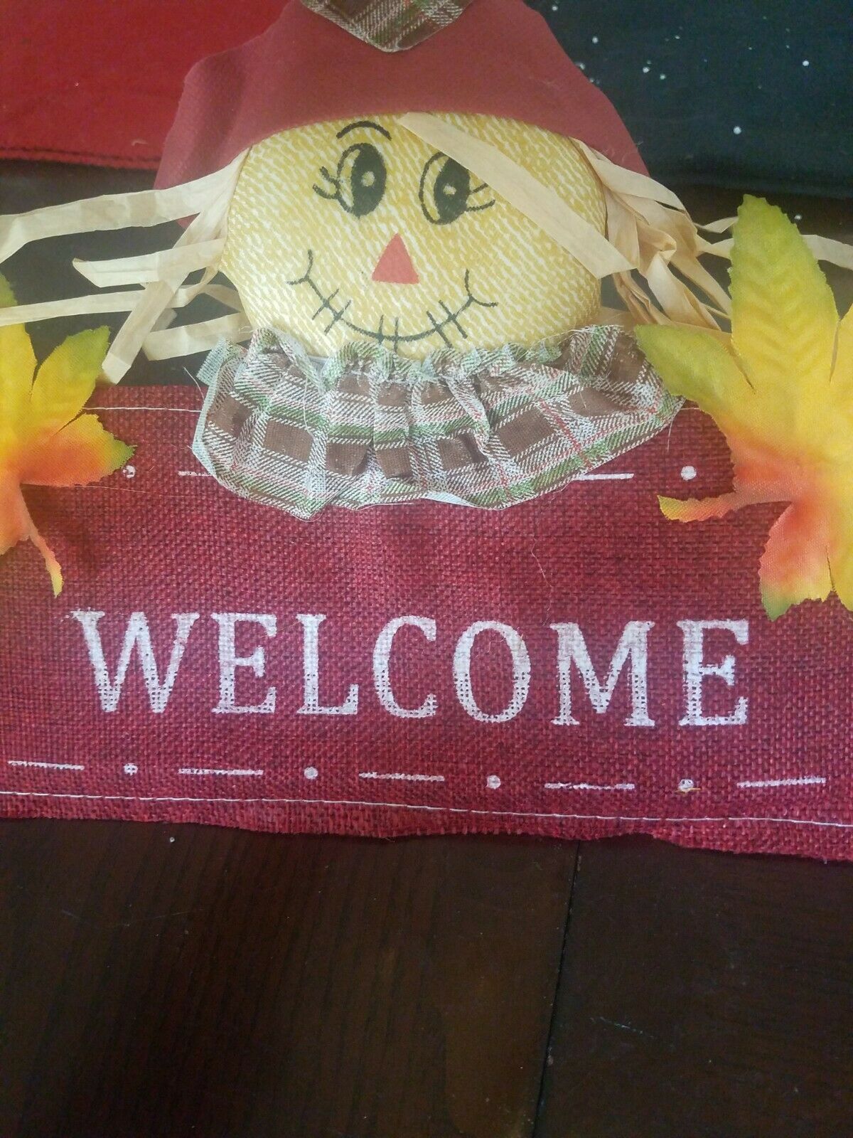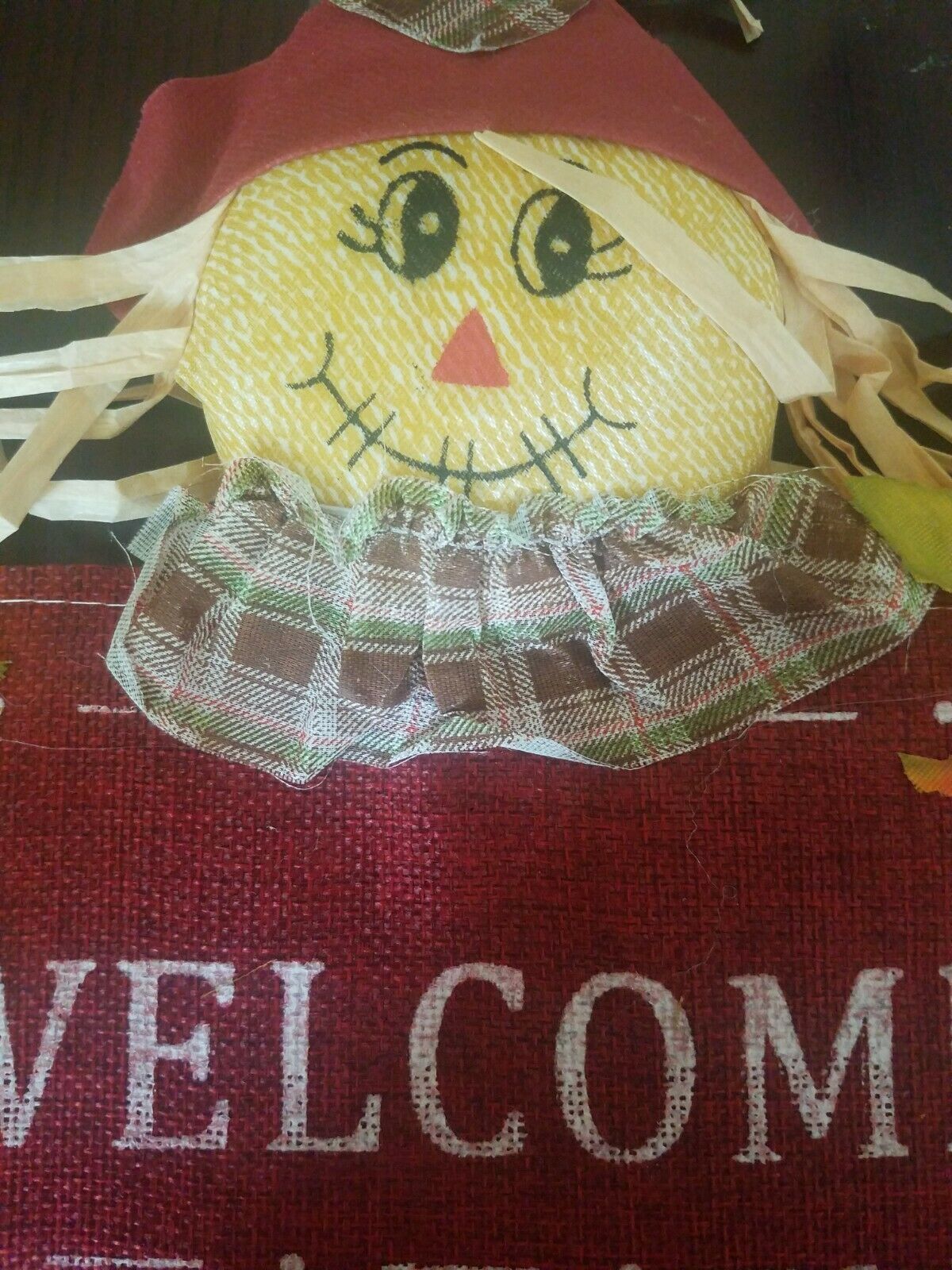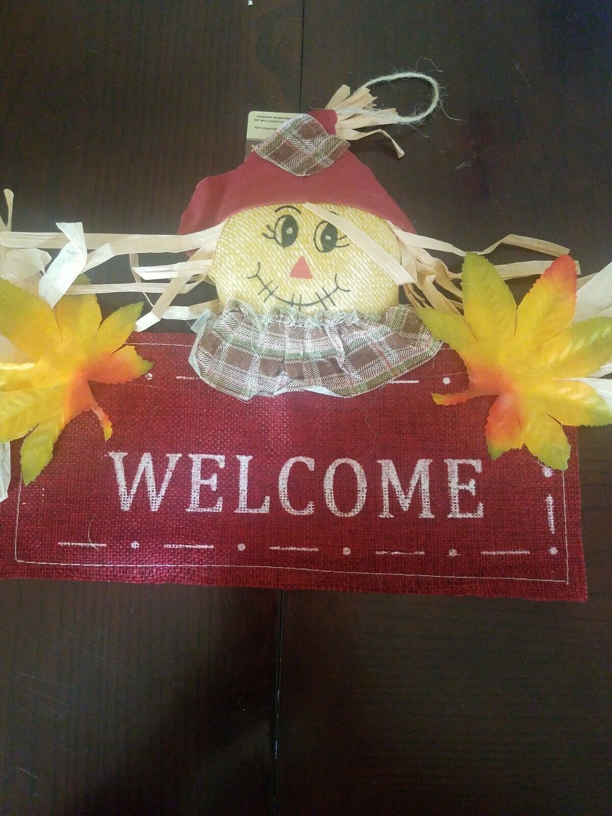 Welcome Scarecrow Door Hanger Sign Fall. Condition is New. Inventory box number 3147