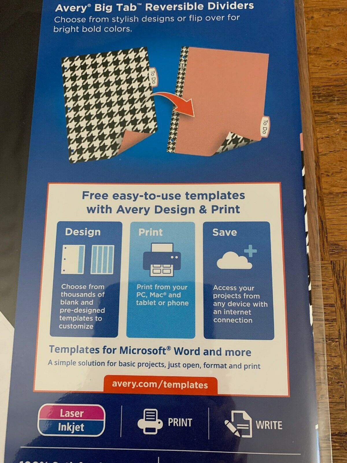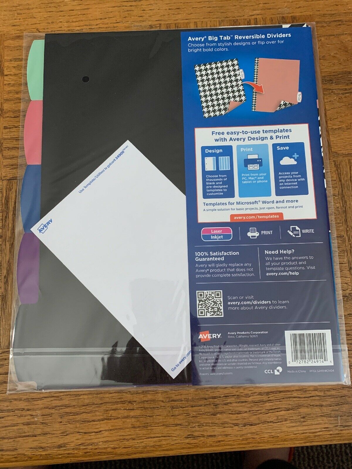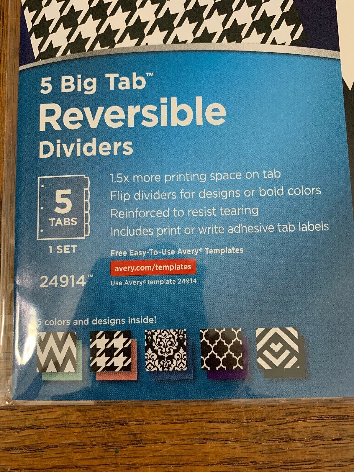 Avery Big Tab Reversible Dividers 5 Count. Condition is New. Shipped with USPS First Class Package.