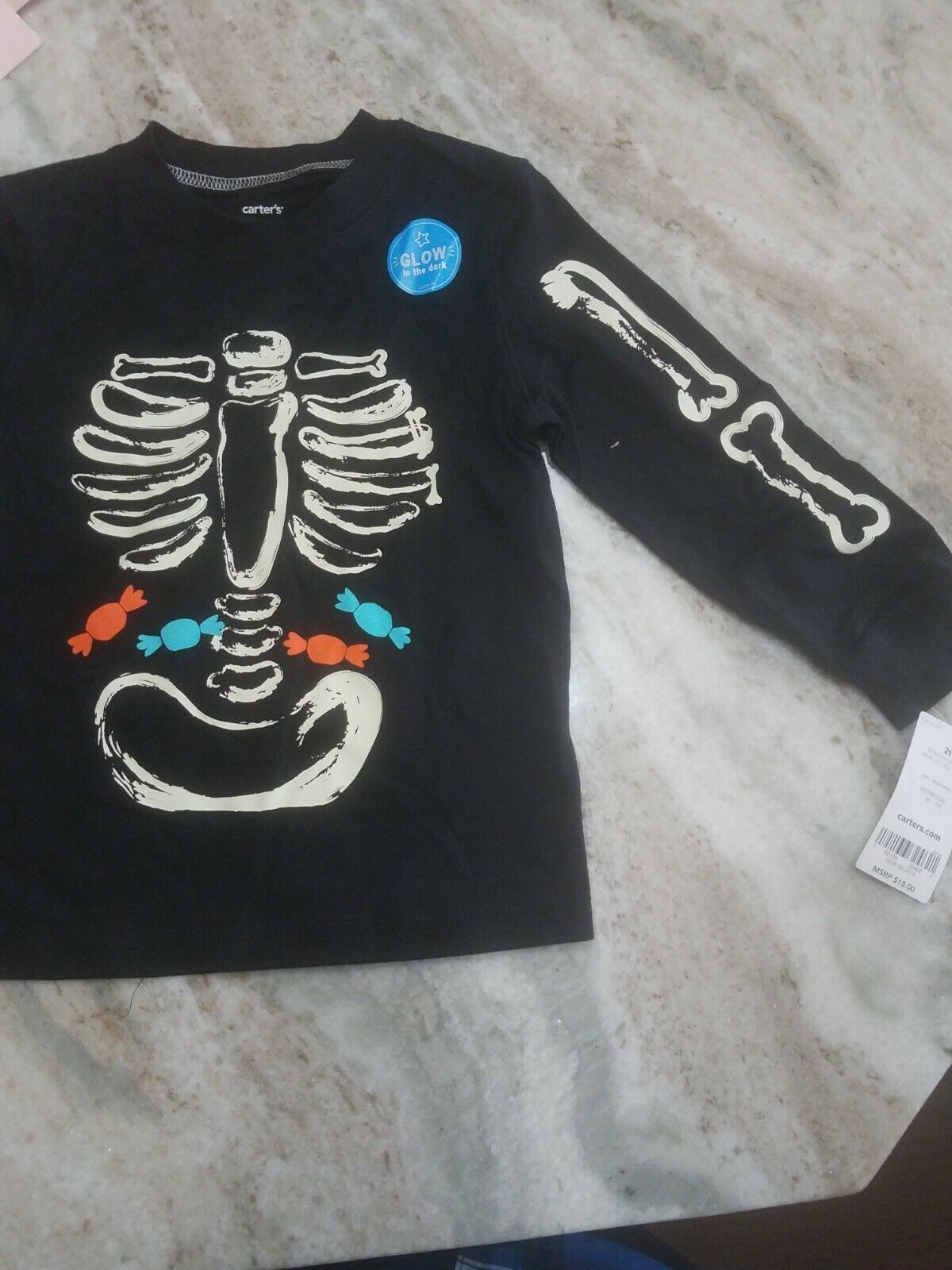 2T Carters Glow In The Dark Bones Long Sleeve Shirt. Condition is New with tags. Shipped with USPS Media Mail. Inventory box number 3197