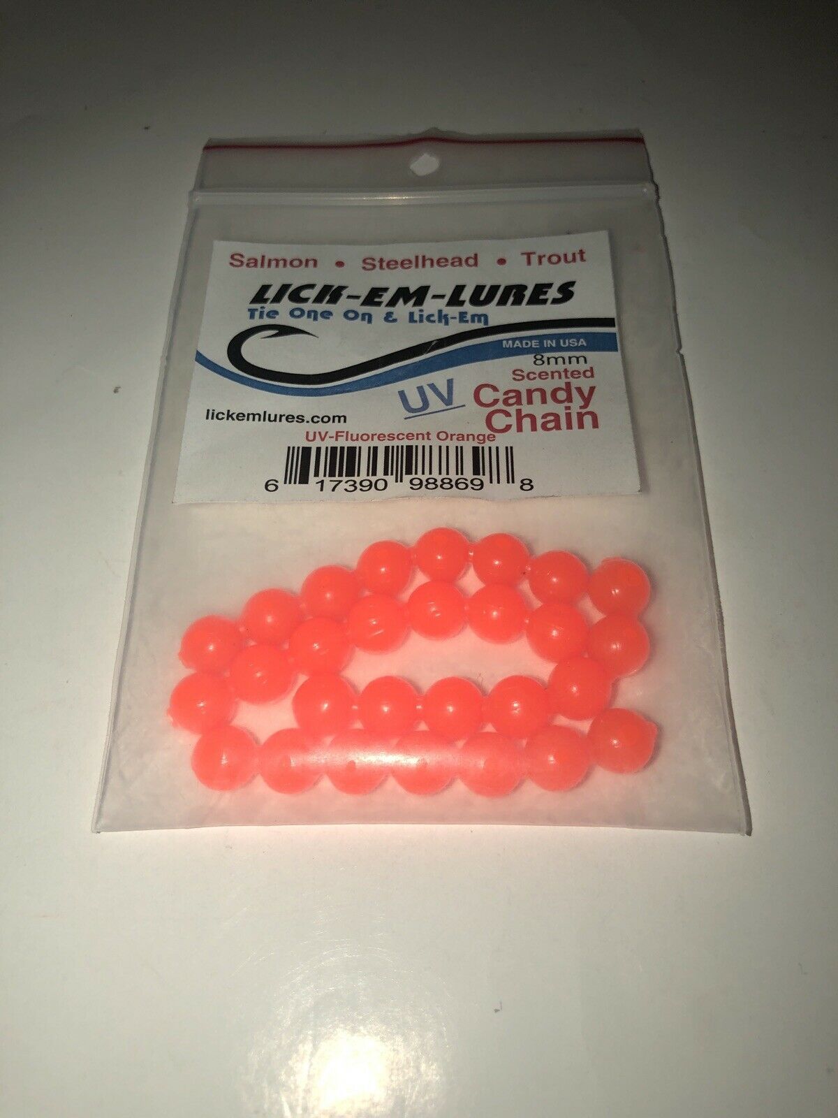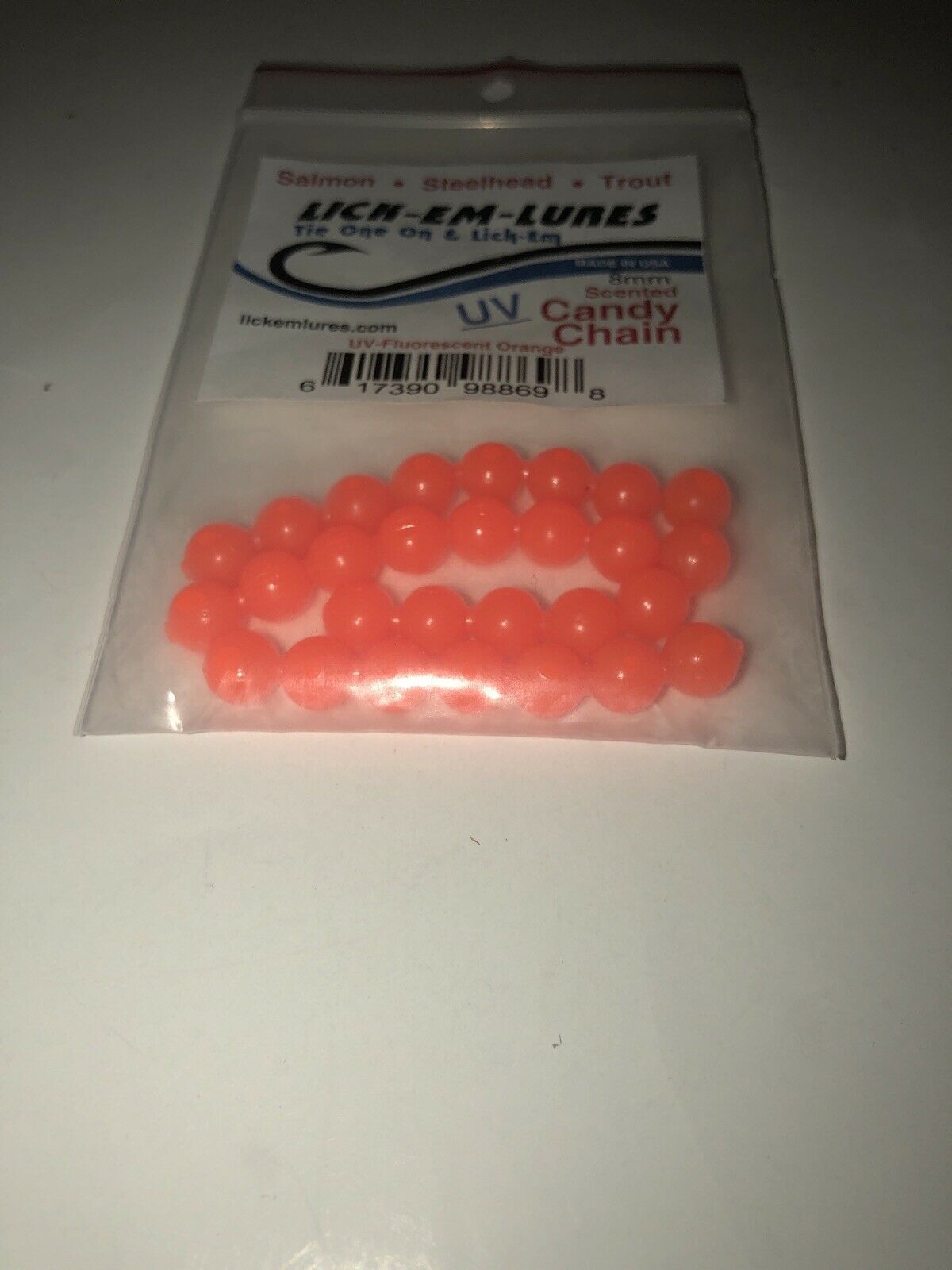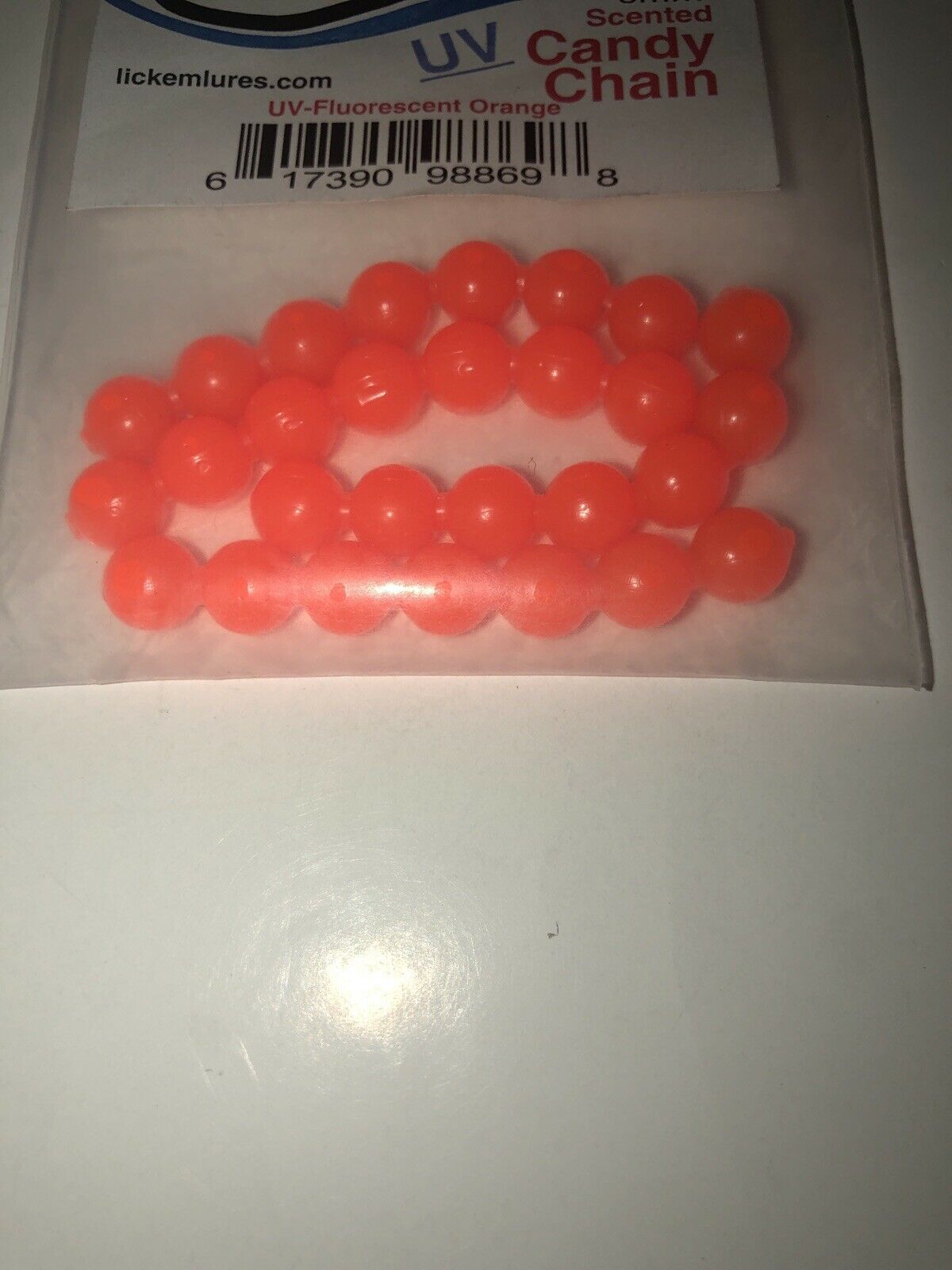 NEW LICK-EM-LURES Candy Chain 8mm|Fluorescent Orange|Soft Beads SHIPN24HR
