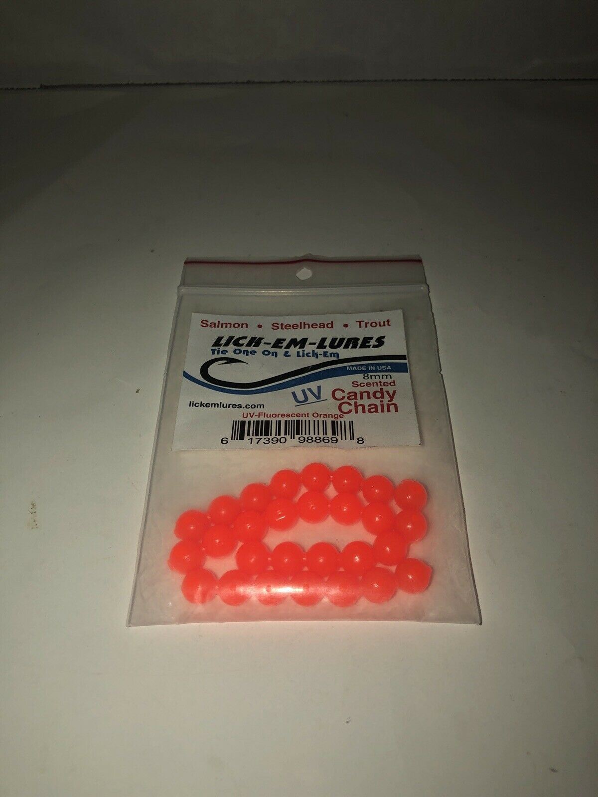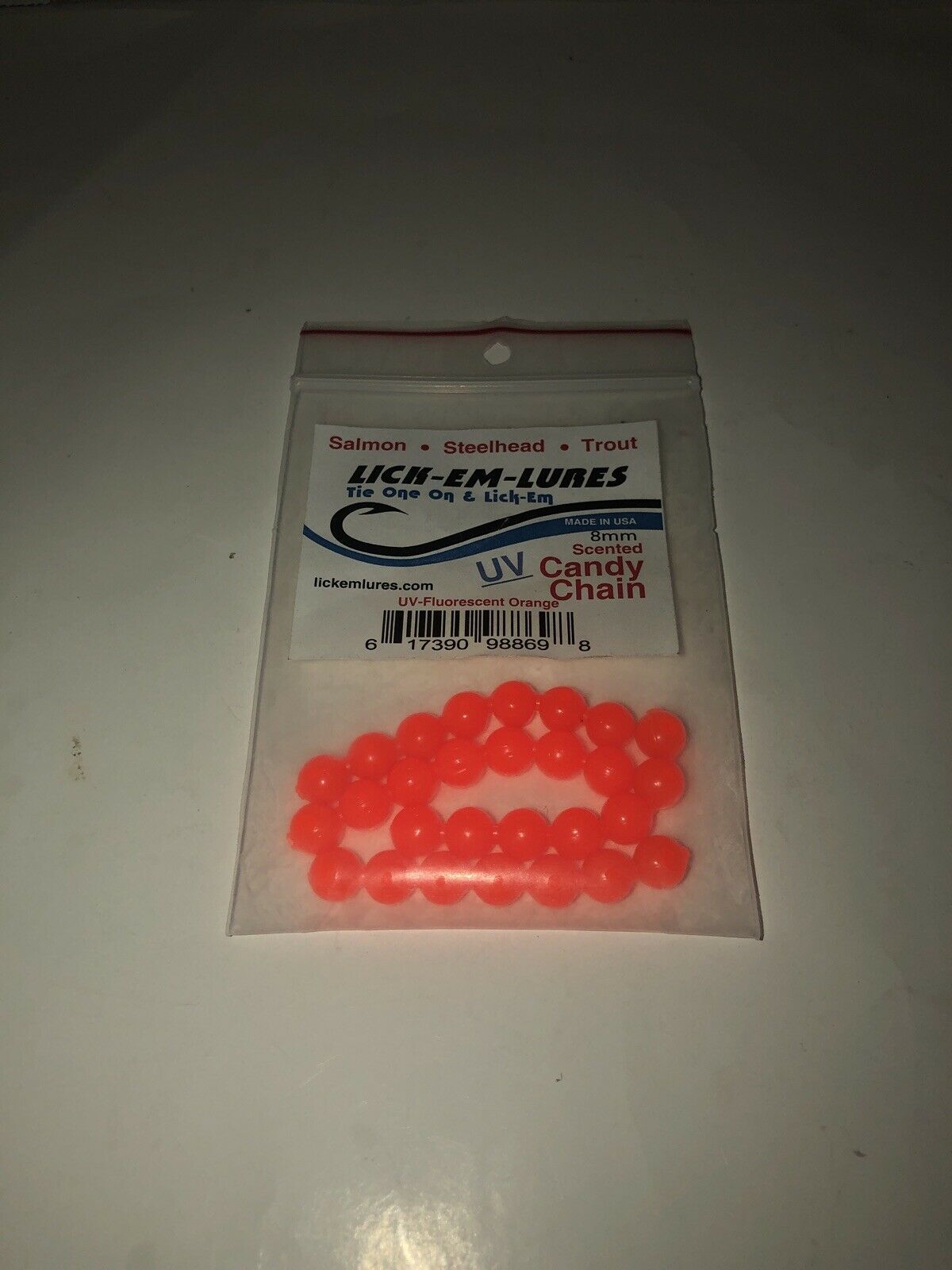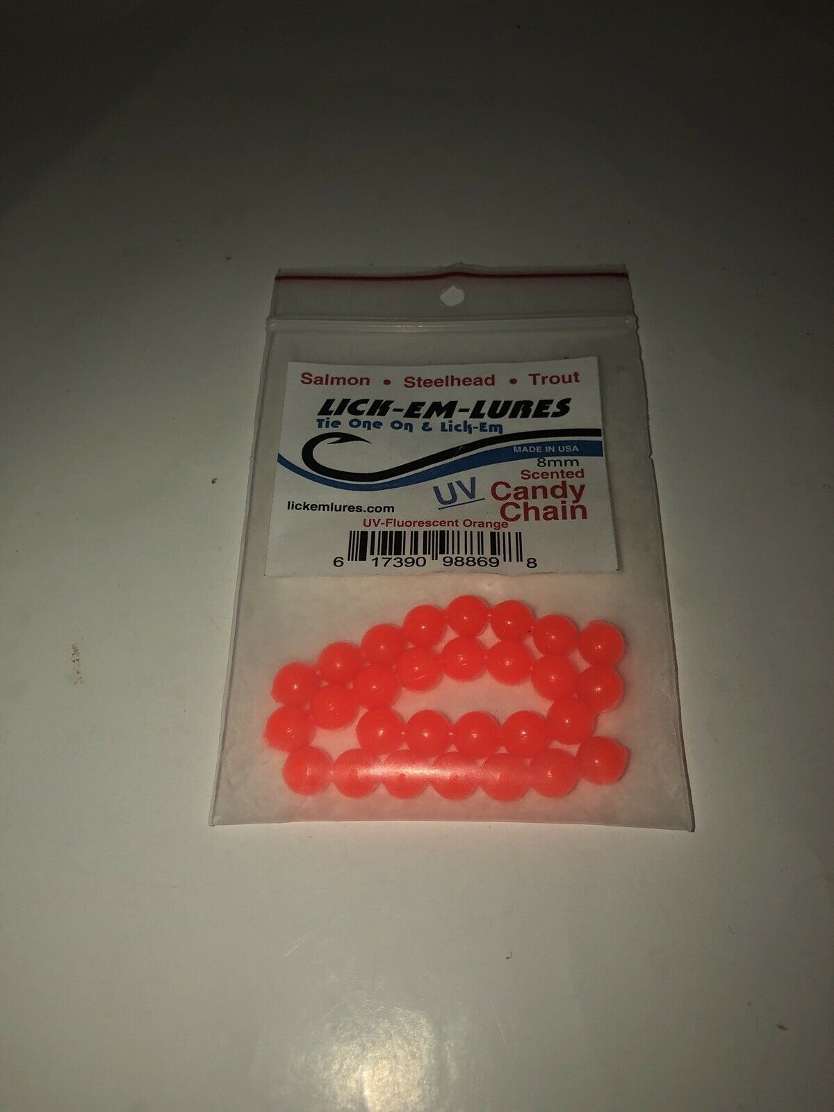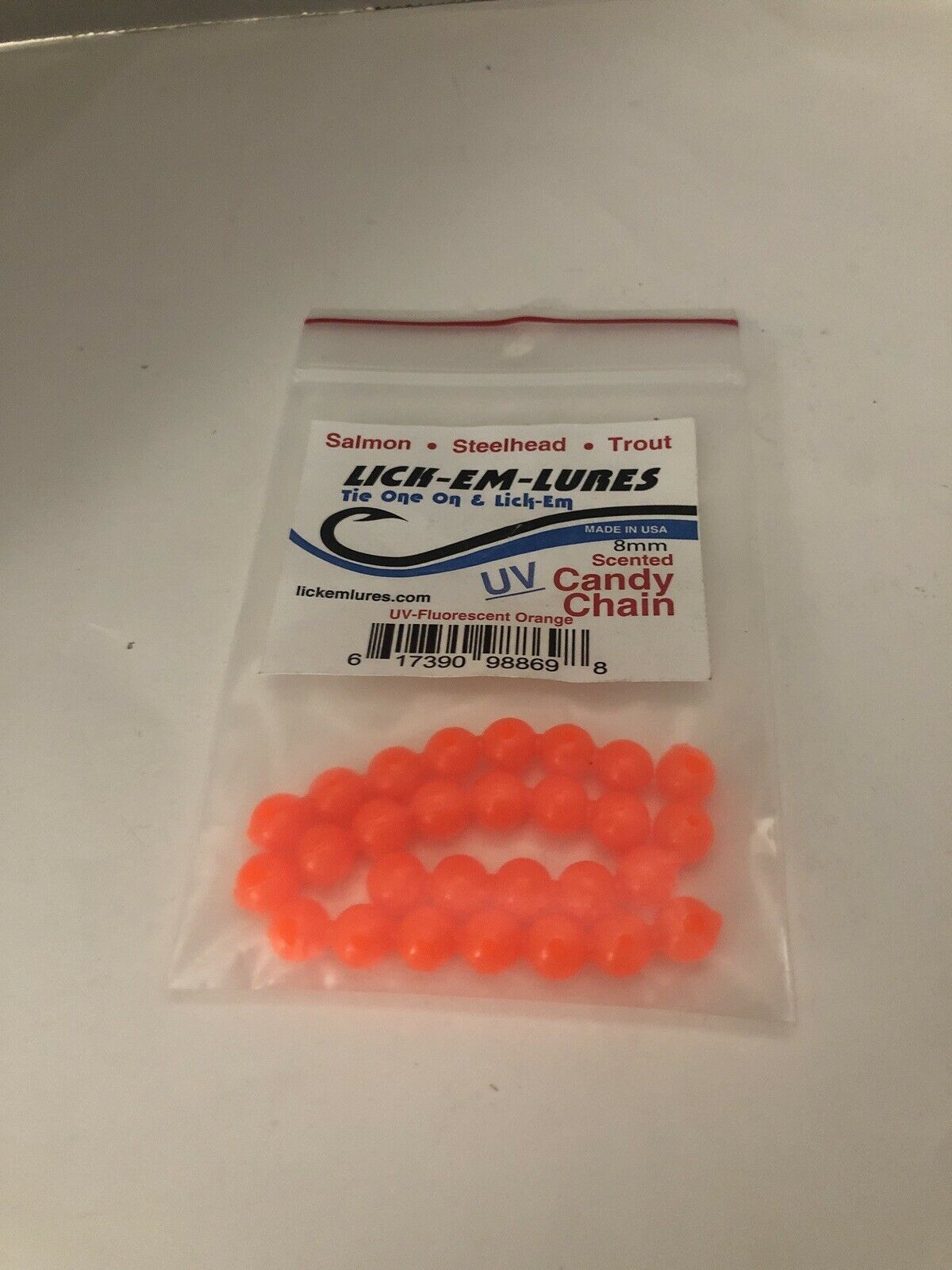 NEW LICK-EM-LURES Candy Chain 8mm|Fluorescent Orange|Soft Beads SHIPN24HR
