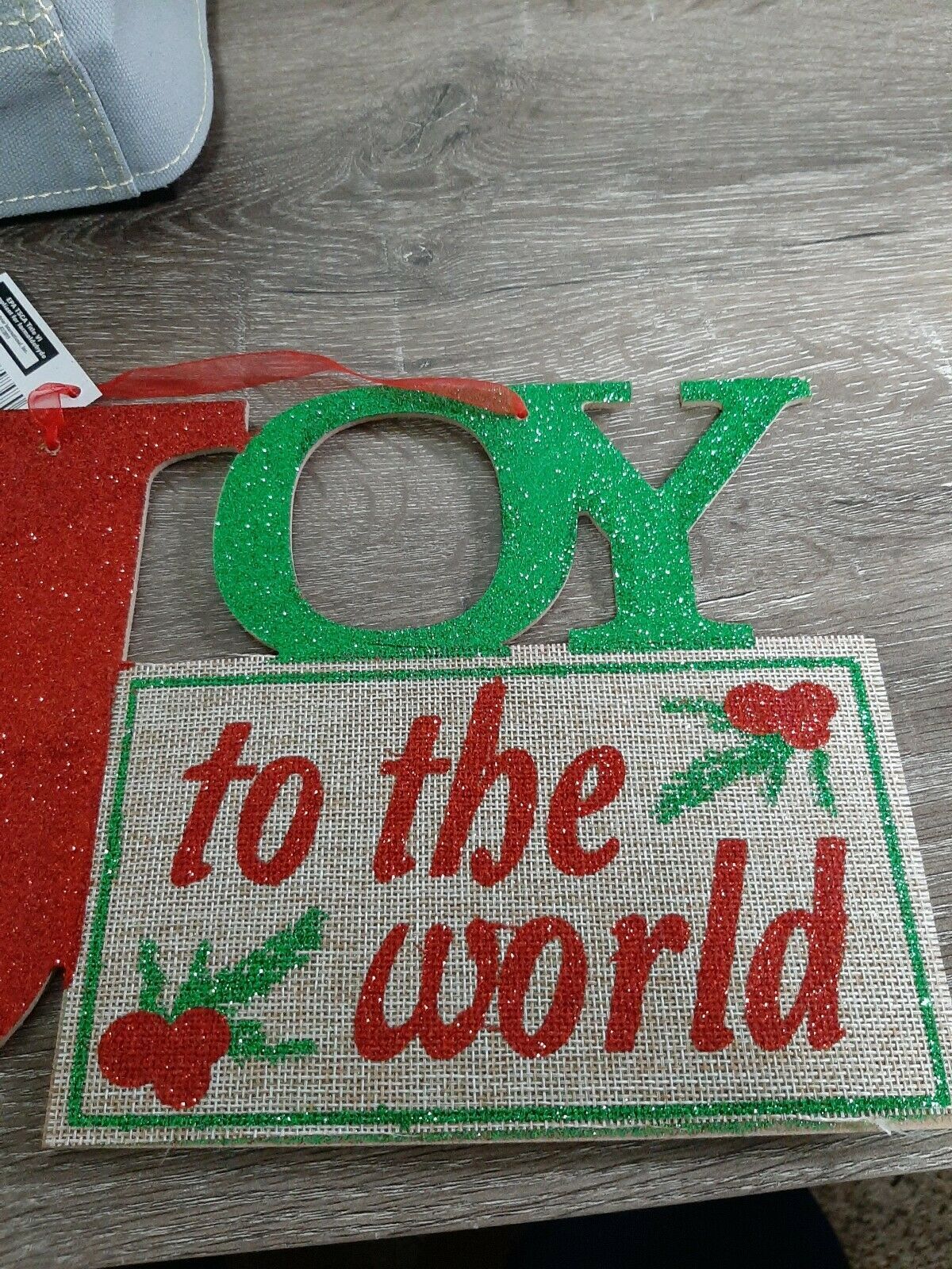 Joy to the world Wood hanging sign. Glitter . Condition is New. Shipped with USPS First Class Package within 24 hours.