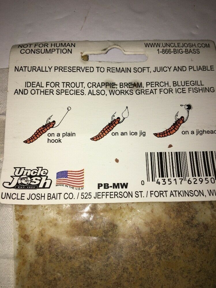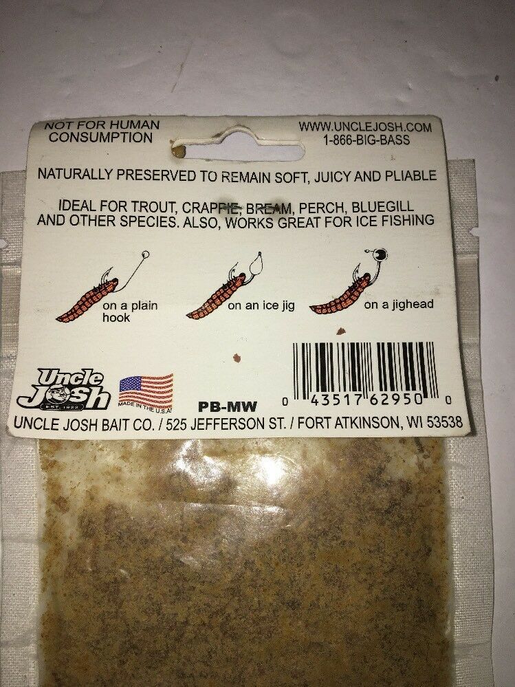 Meal Worms By Uncle Josh-Over 36 PCS-Great For Trout,Panfish,Ice Fish-RARE-New