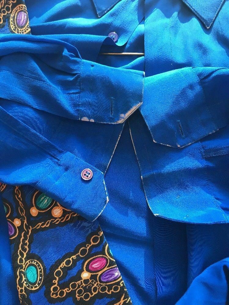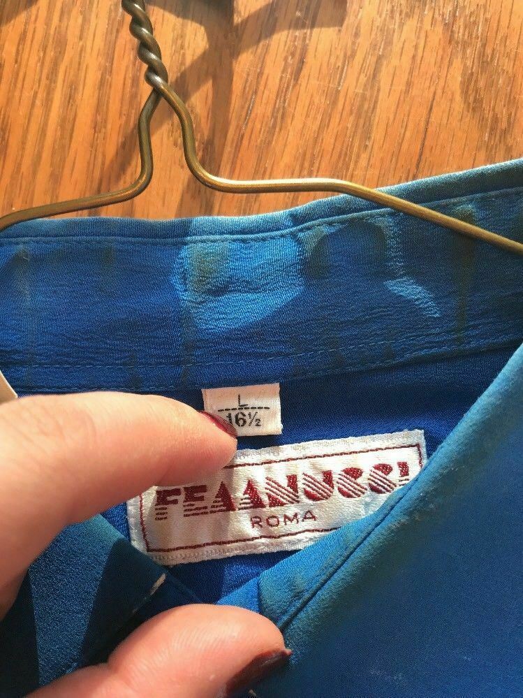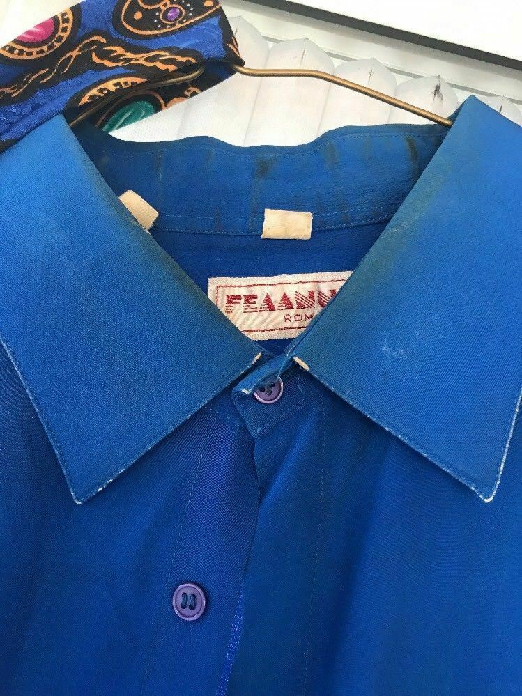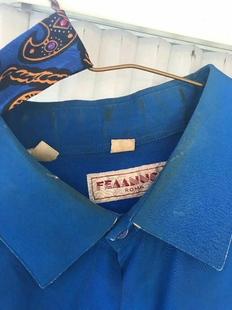 MENS LONG SLEEVEBLUE Shirt Necktie SIZE L 16.5 ITALIAN Ships N 24h