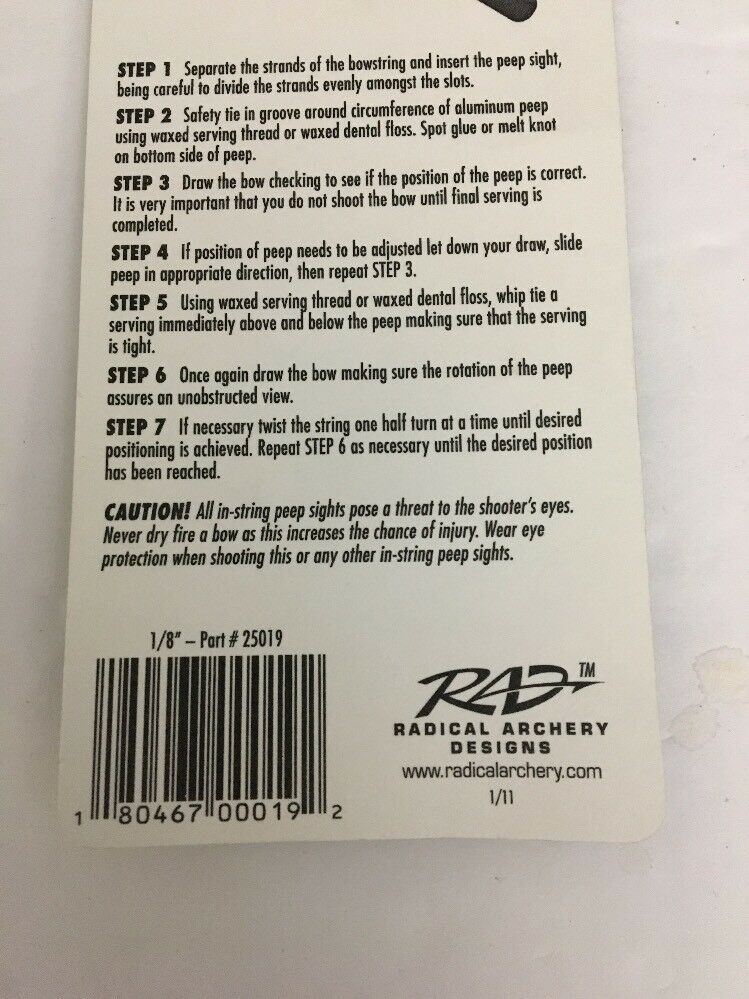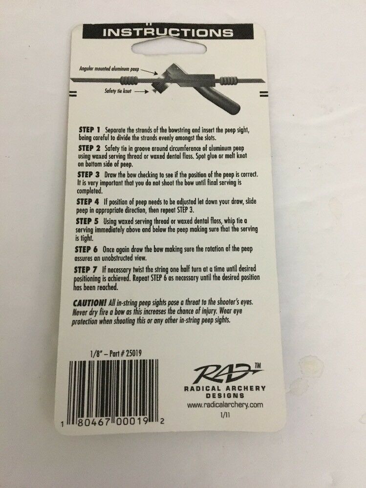 Radical Archery Designs 25019 Super Deuce 38 Black Peep Sight 1/8" RARE-NEW