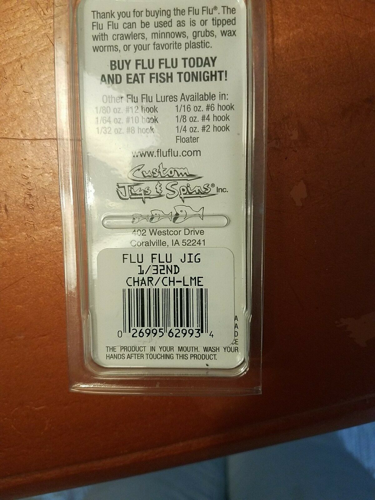Flu Flu Custom Jigs And Spins 1/32nd Char/CH-LME. Condition is "New". Shipped with USPS First Class. Inventory box number 833
