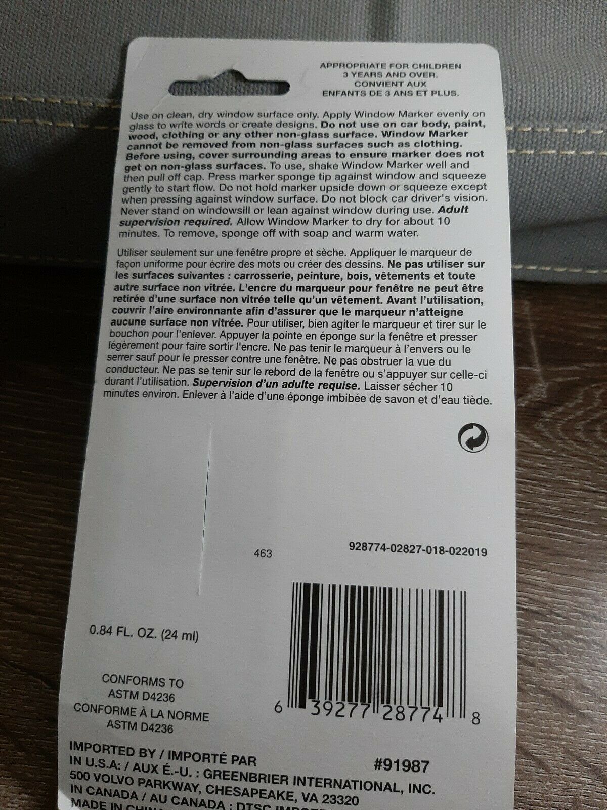 (1) White Temporary Marker Paint Car Windows Washable 0.84 oz. Condition is New. Shipped with USPS First Class Mail within 24 hours.