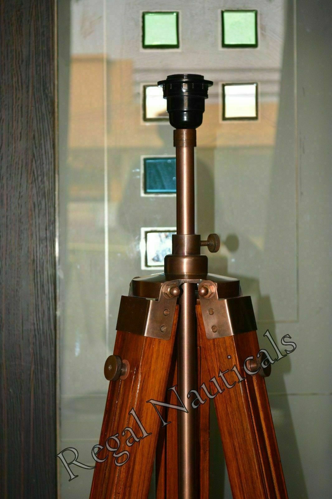 Vintage Copper Style Tripod Lamp Stand Heavy Decorat Big Floor Lamp Wooden Stand