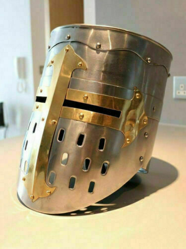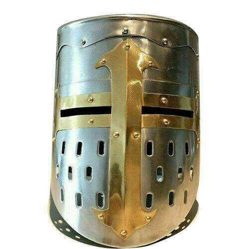 Medieval Knight Templar Wearable Metal Crusader Helmet Armor w/ mason's cross