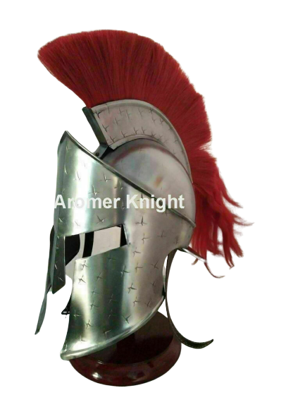 Medieval Roman SPARTAN Helmet Chrome Lars Scan With Red Plume Corinthian Helmet