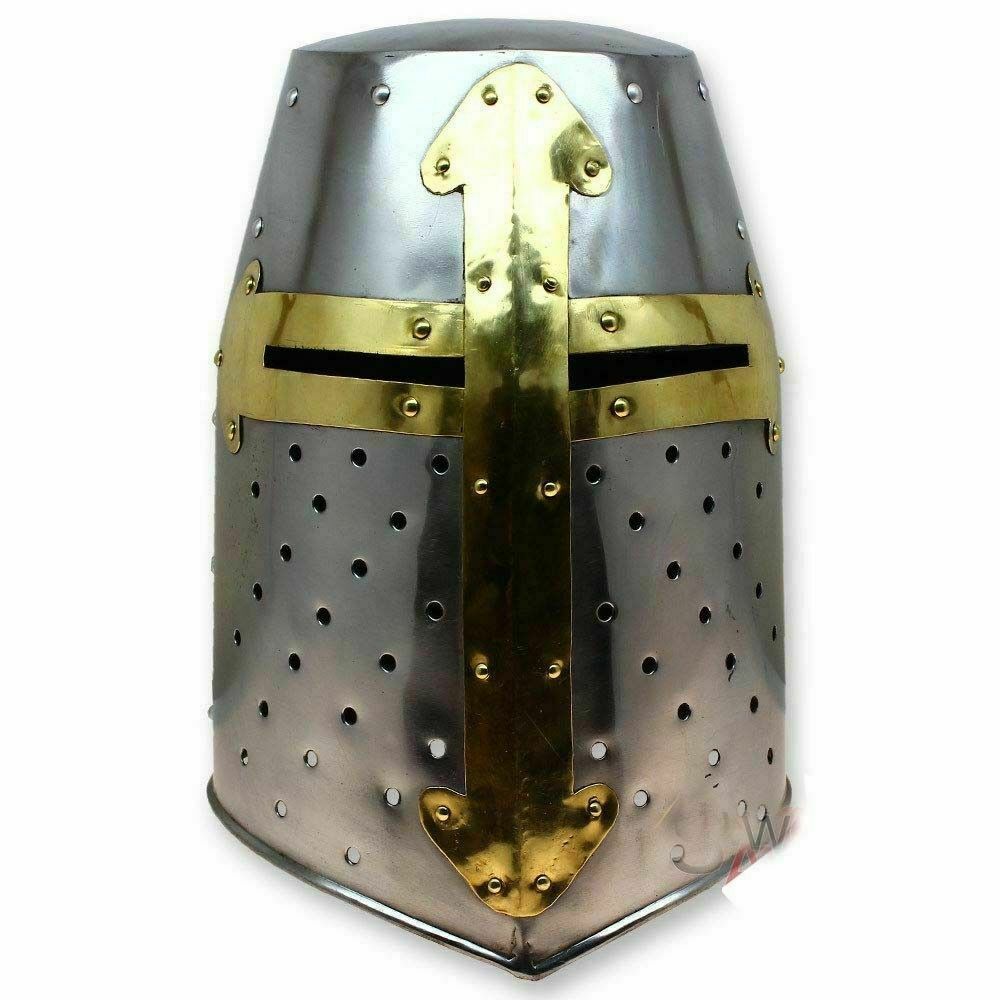 Medieval Knights Templar Helmet Armor Carbon Steel Forged Crusader Great Helmet