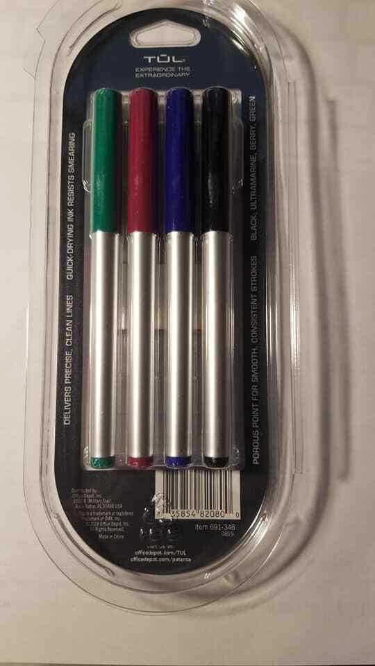 TuL Fine Liner Felt-Tip Pens, Fine Point, 1.0 mm, Assorted Inks, 4 Pack