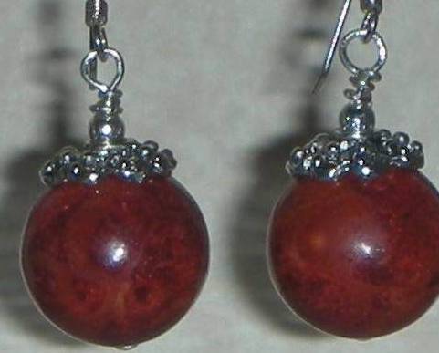 Genuine Natural 16MM Red Spongy Coral Earrings