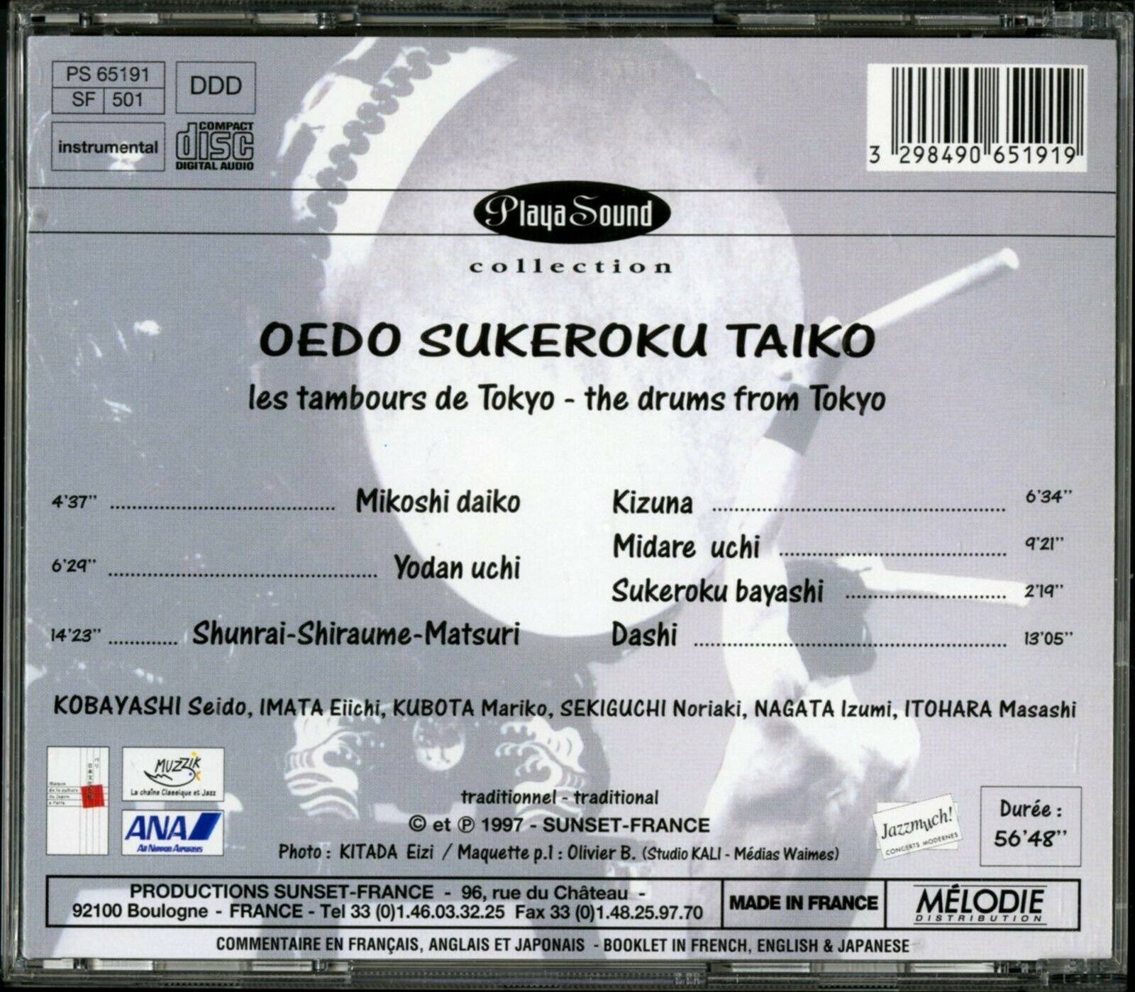 DRUMS OF TOKYO ODEO SUKEROKU TAIKO PLAYSOUND CD PS 65191 MADE IN FRANCE