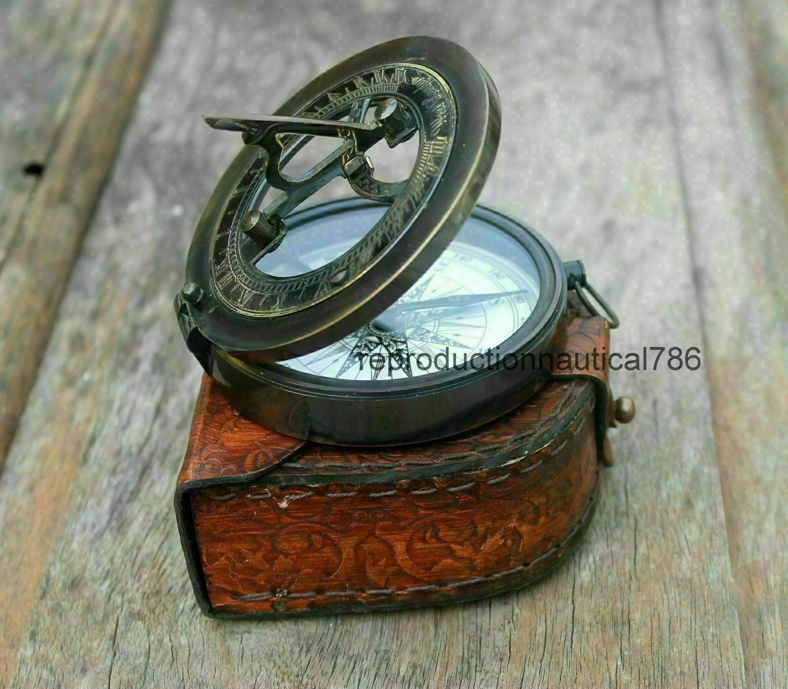 THE BRASS SUNDIAL COMPASS ANTIQUE COLLECTIBLE MAGNETIC COMPASS VERY NICE FOR MARINE GIFT.