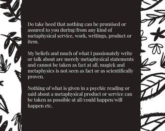 These readings are based on my personal beliefs. No guarantees can be made regarding outcomes, as we all control our own destinies. All readings should be considered entertainment only.