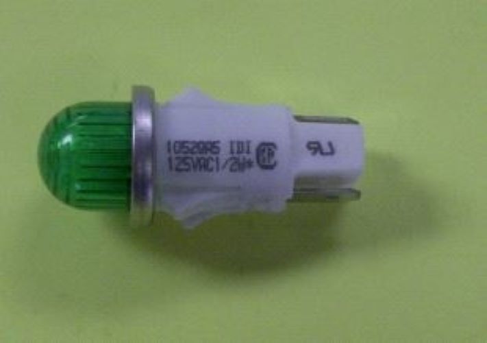 it is a 105 to 125vac panel mount green incandescent indicator light, non-relampable with quick connect lamp base and dome lens. the 1052q-series with polished stainless-steel bezel, white nylon housing, polycarbonate lens and tinned brass quick terminals. indicators snap fit into 0.5/0.505-inch hole in 0.02/0.1-inch panels.
