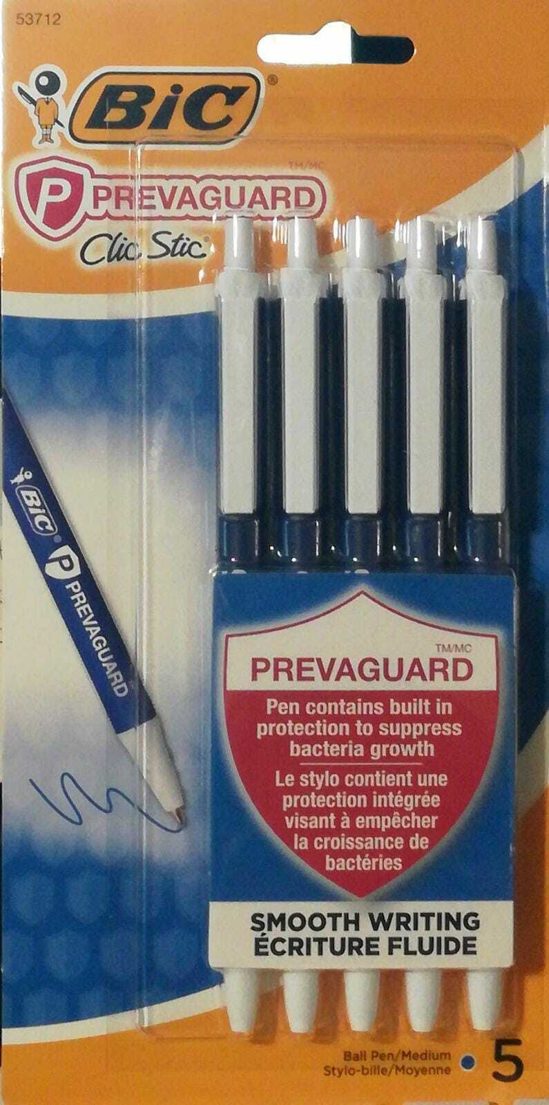 BIC PrevaGuard Clic Stic Ballpoint Pen With Antimicrobial Blue 5Pk (LOC PEG 3LP