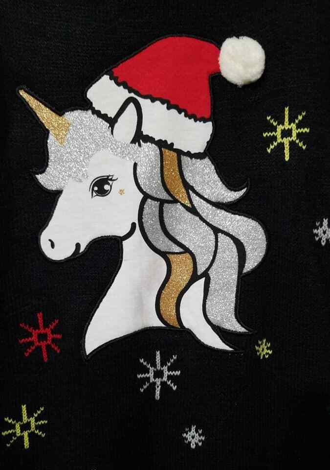 Holiday Sweater Dress Unicorn Sweater Dress Size XL/XG 14-16 Color Black