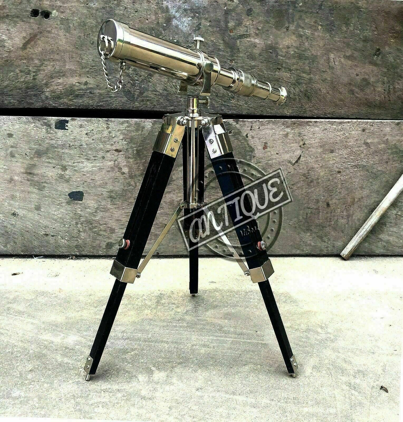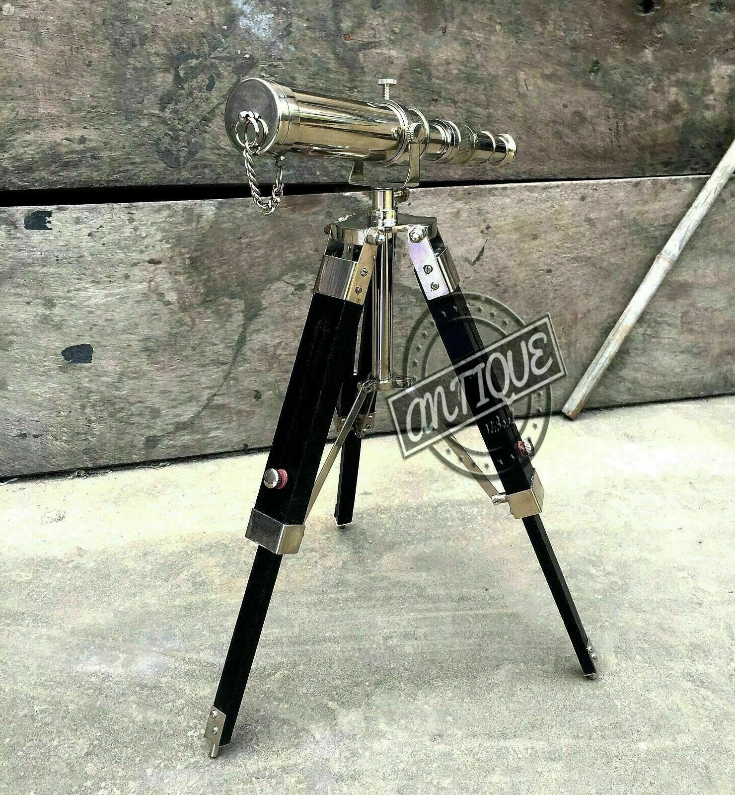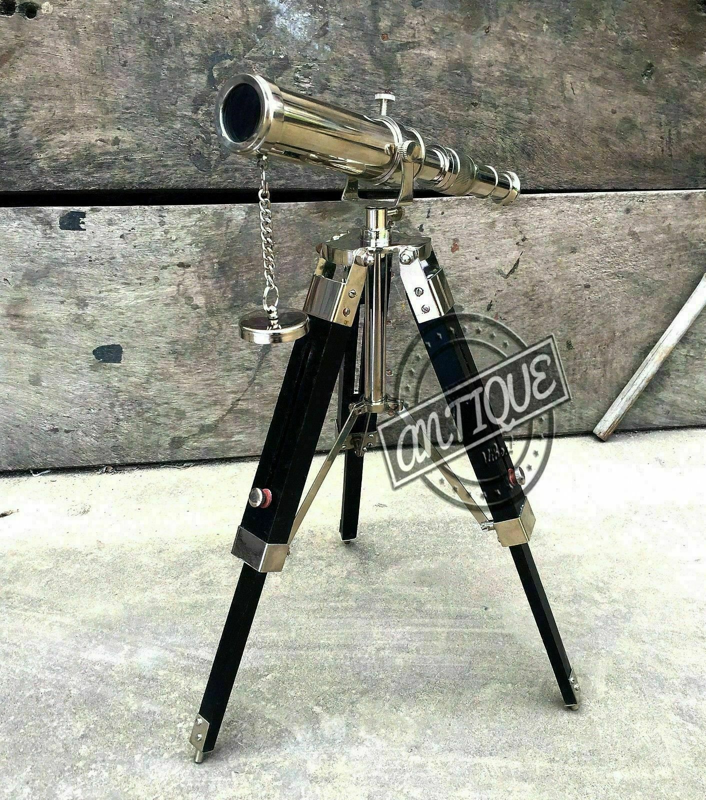 Working Antique Design Table Decor Black Tripod with Telescope Stand Silver