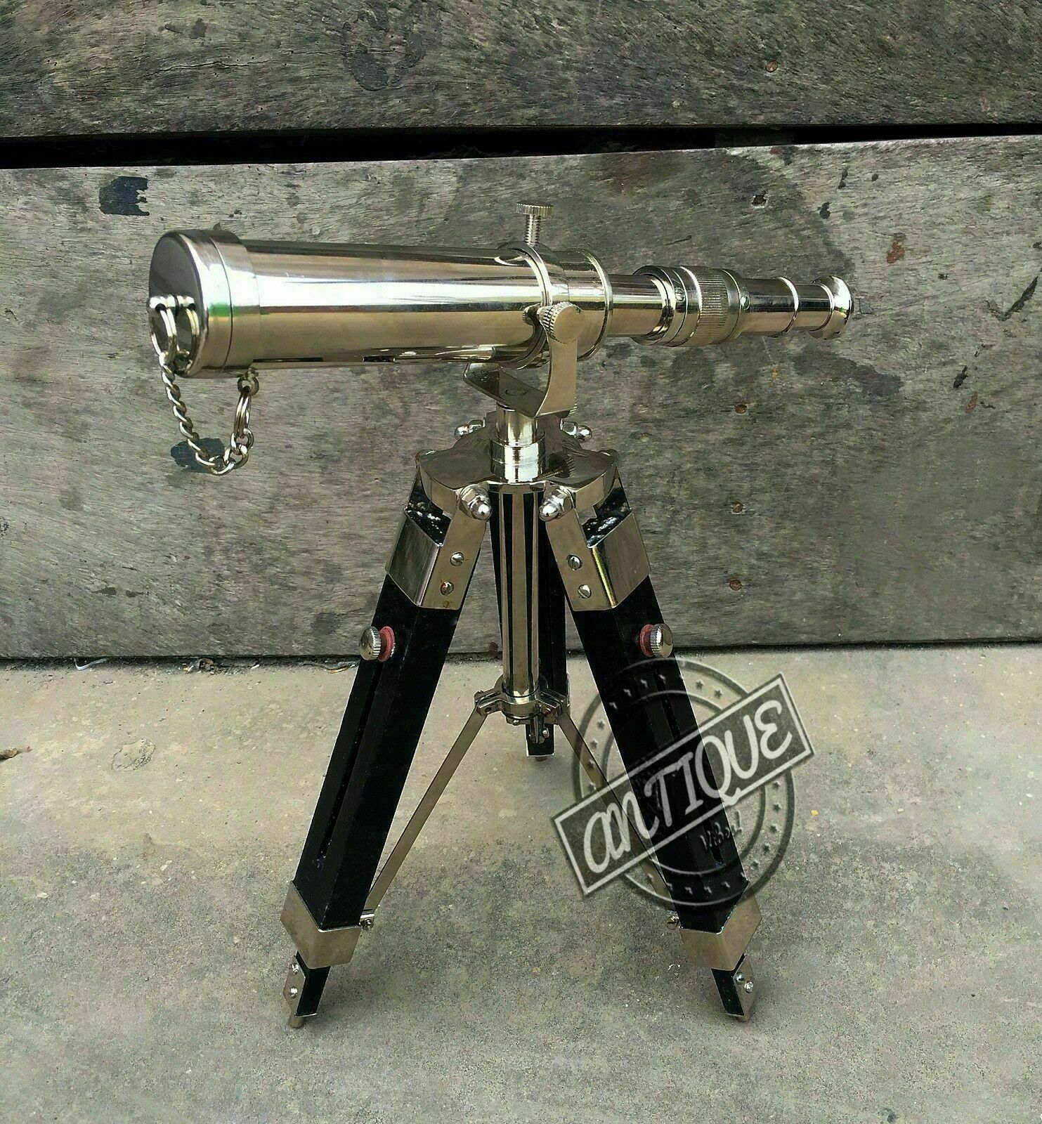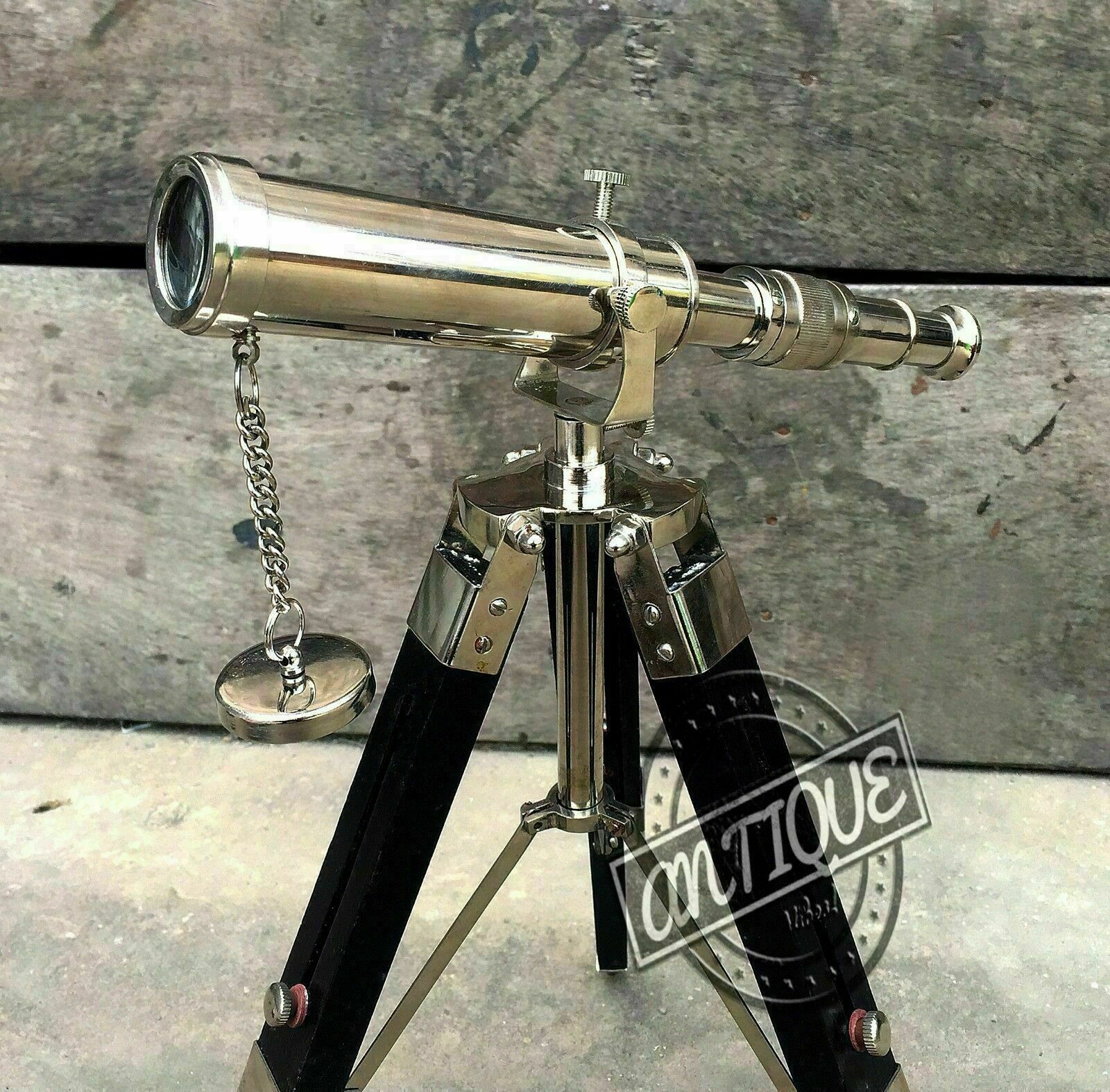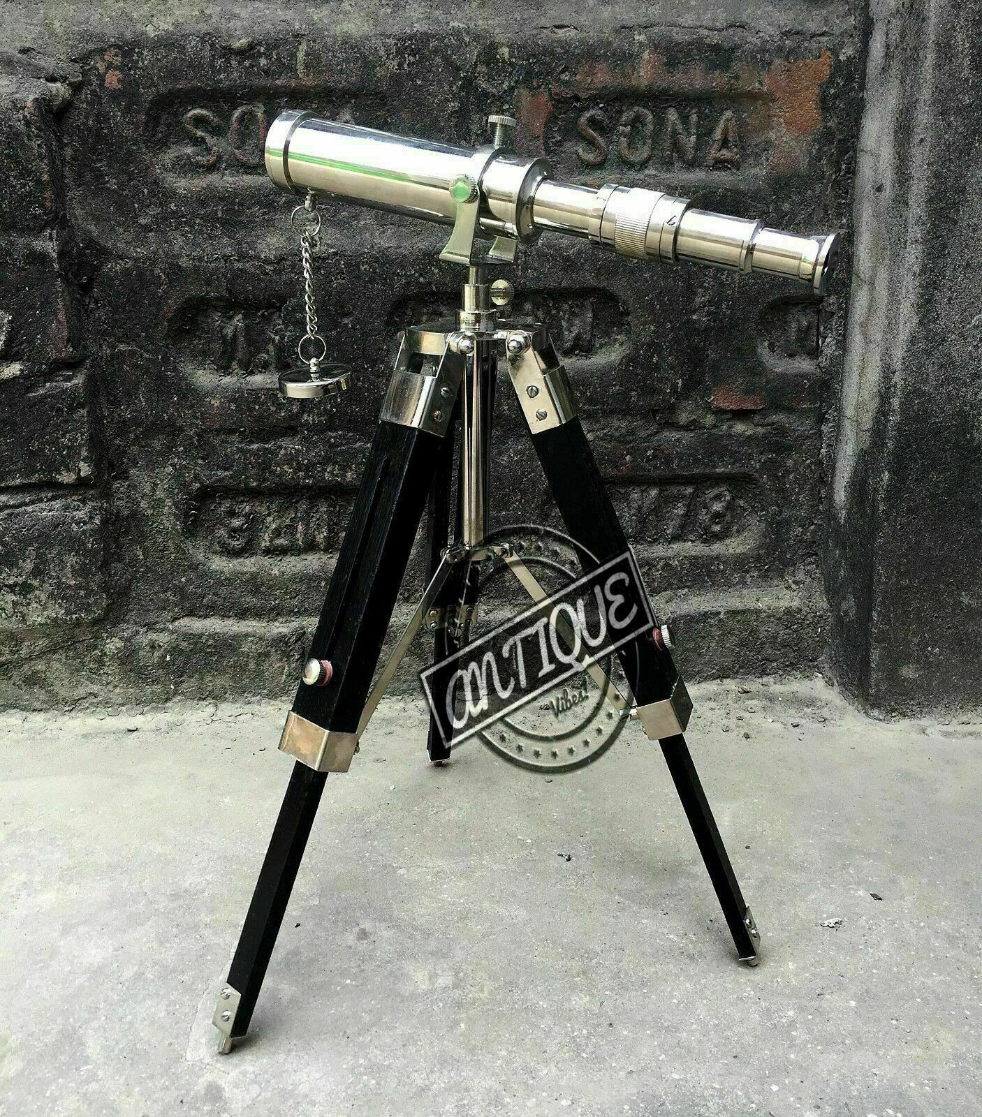 Working Antique Design Table Decor Black Tripod with Telescope Stand Silver