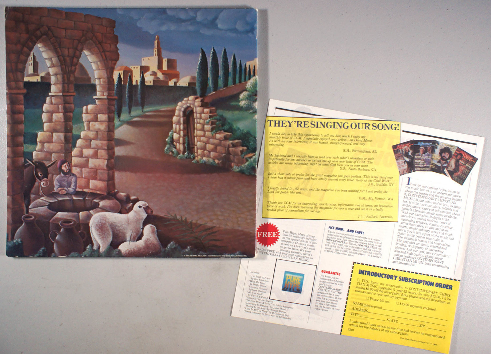 Order form insert included. Vinyl plays with occasional light-crackles (play-graded). Gate-fold cover looks great; a few creases near edges; moderate scuffing, a couple tiny surface abrasions, and surface impressions (front/back); discoloration spots near top-left on front. Inner-gate is stuck together. From what we can see, there are surface abrasions and discoloration spots on both panels. Inner-sleeve is generic white. Spine is easy-to-read with mild-wear. Shelf-wear along top/bottom-edge and corners. Opening is crisp with signs of light use. (Not a cut-out.)