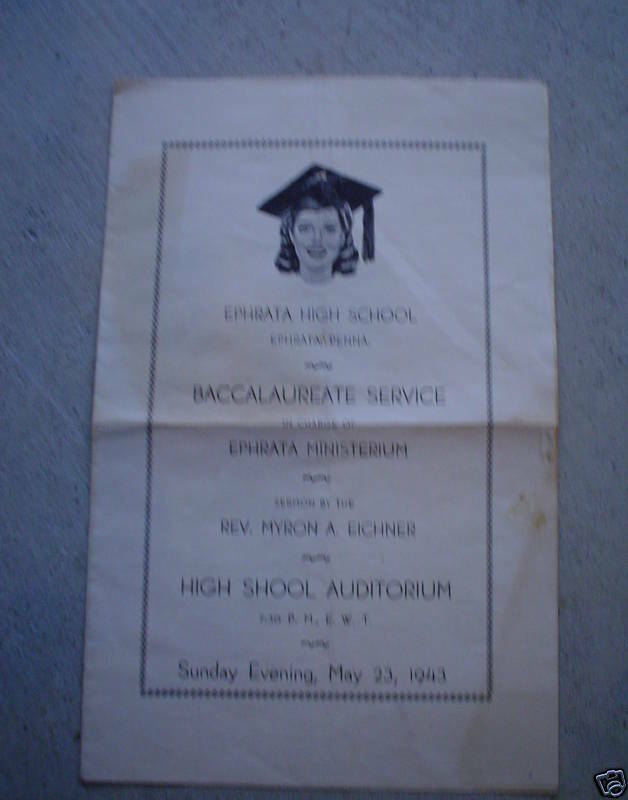 Vintage 1943 Ephrata High School Baccalaureate Pamphlet