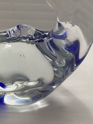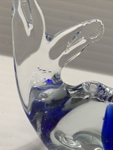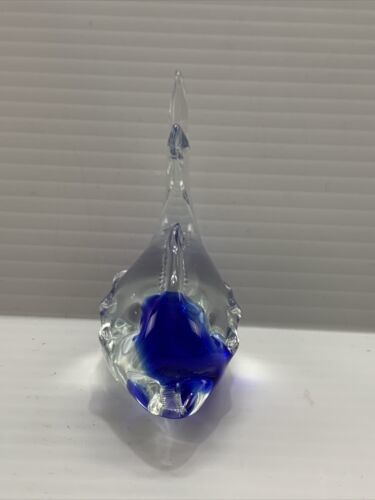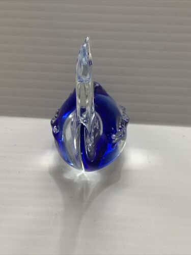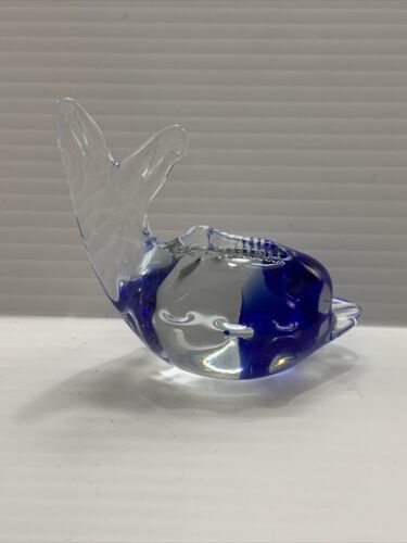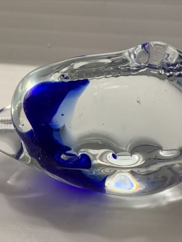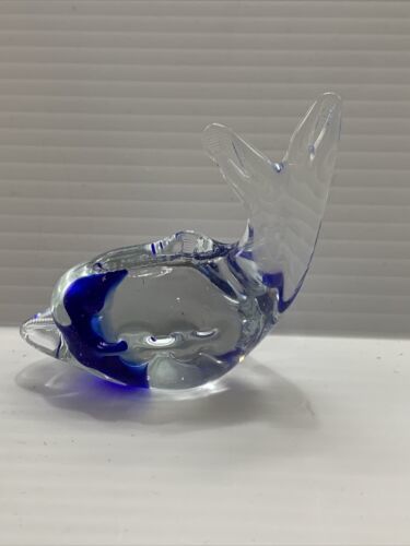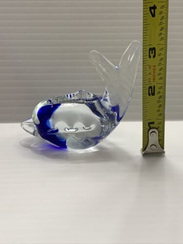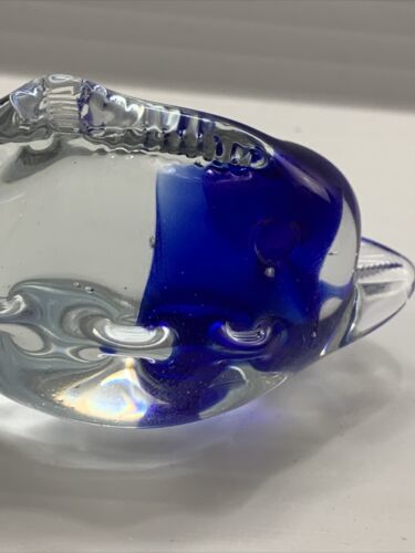 VINTAGE Handmade Paperweight Blue Fish Colorful Hand Blown Glass Gift KG JD