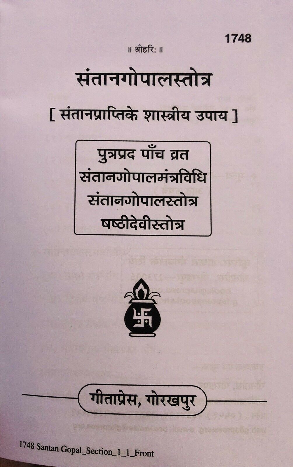 RELIGIOUS GITA PRESS SANTAN GOPAL STOTRA India Holy KITAB BOOK FREE SHIP
