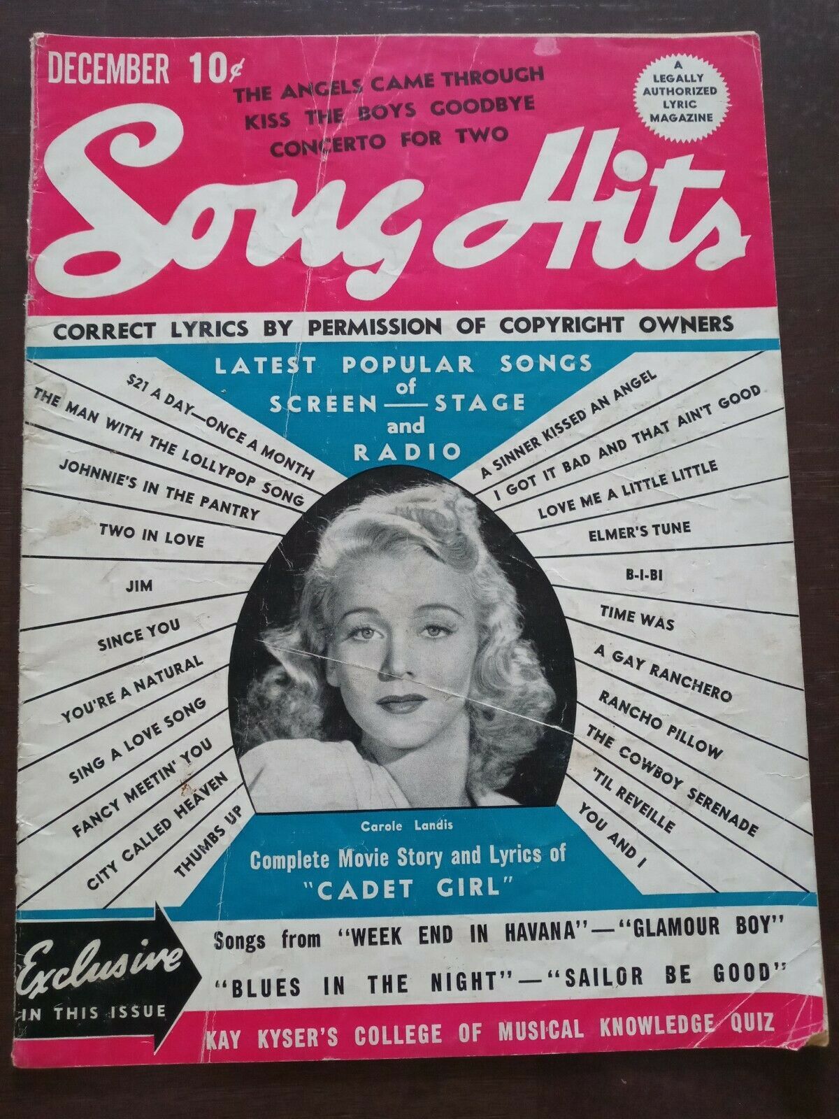 VINTAGE 1941 SONG HITS MAGAZINE Carole Landis Cover December Lyrics Magazine