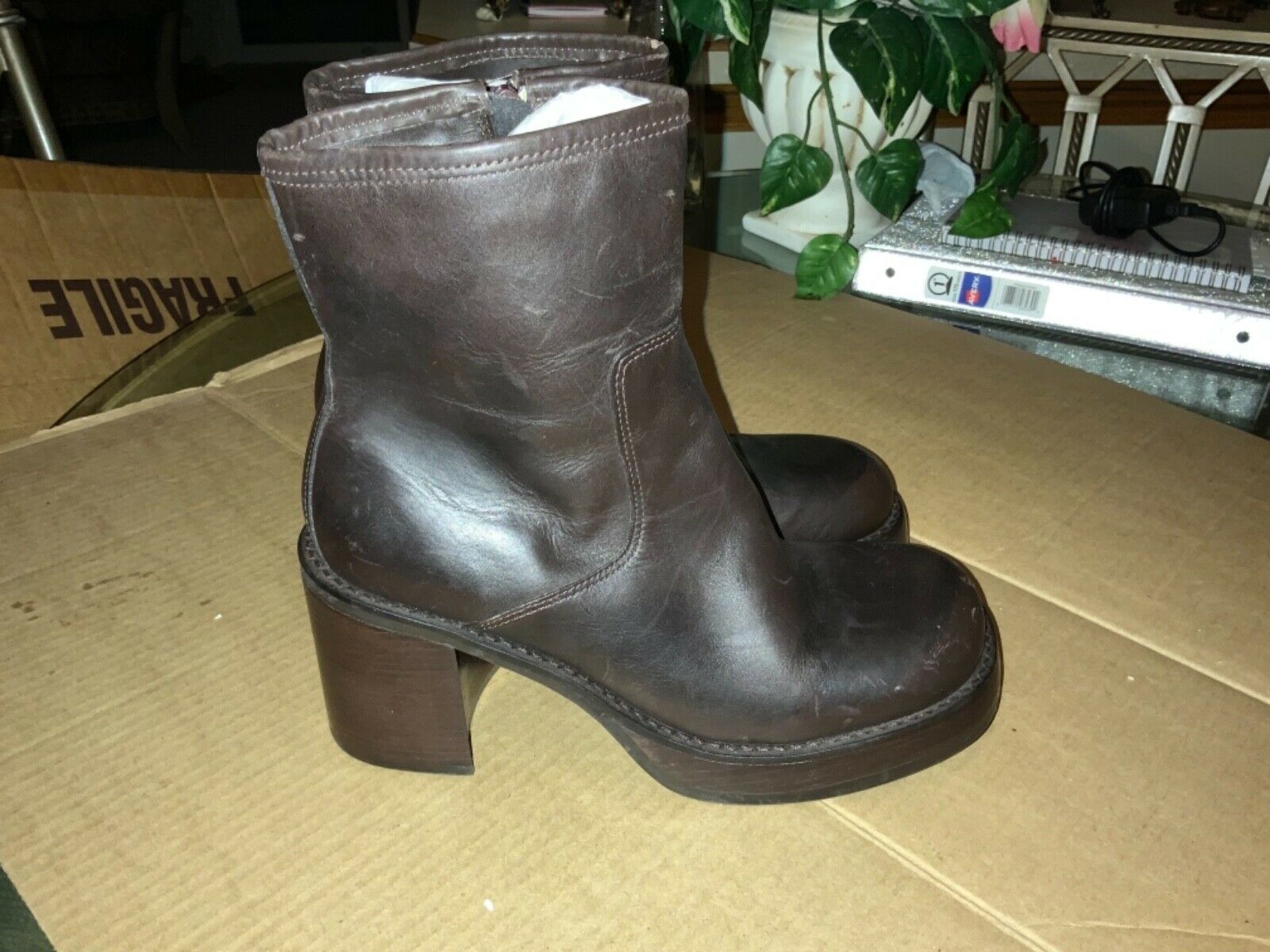 American Eagle Outfitters Brown Leather Platform Boots Women Size 10M
