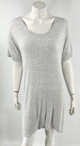 Soma T Shirt Dress Size Light Gray Heather Ribbed Hi Lo Hem Short Sleeve Womens