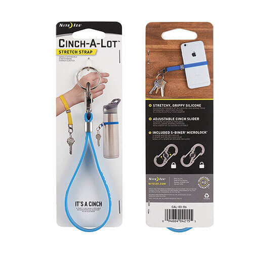 KEY CHAIN WITH STRETCH STRAP - Keep your keys convenient and accessible with this stretchy silicone strap and key ring combination. INCLUDED S-BINER MICROLOCK - The S-Biner MicroLock attached to the split ring makes it quick and easy for you to attach and detach your keys, and lock them in place with a simple twist. ADJUSTABLE SILICONE STRAP - the silicone strap features a cinch-slider so you can adjust the size to hold smaller items like lip balm, or to cinch snugly around your water bottle or wrist for easy key access. colourFUL KEY IDENTIFICATION - Use different colour Cinch-A-Lot Key Holders for different family member's sets of keys for quick identification. WORRY-FREE GUARANTEE - all Nite Ize products are backed by our Worry-Free Guarantee