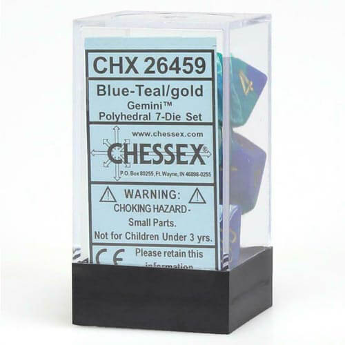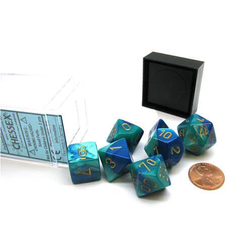 D7 Die Set Dice Gemini Poly (7 Dice) - Blu Teal/Gold