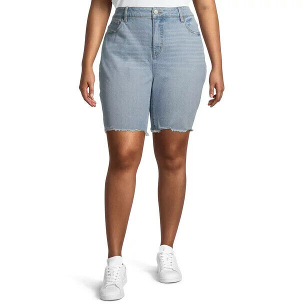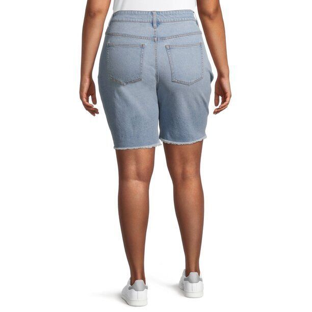 Terra & Sky Women's Plus Size Bermuda Shorts with Frayed Hem LTWASH 26W