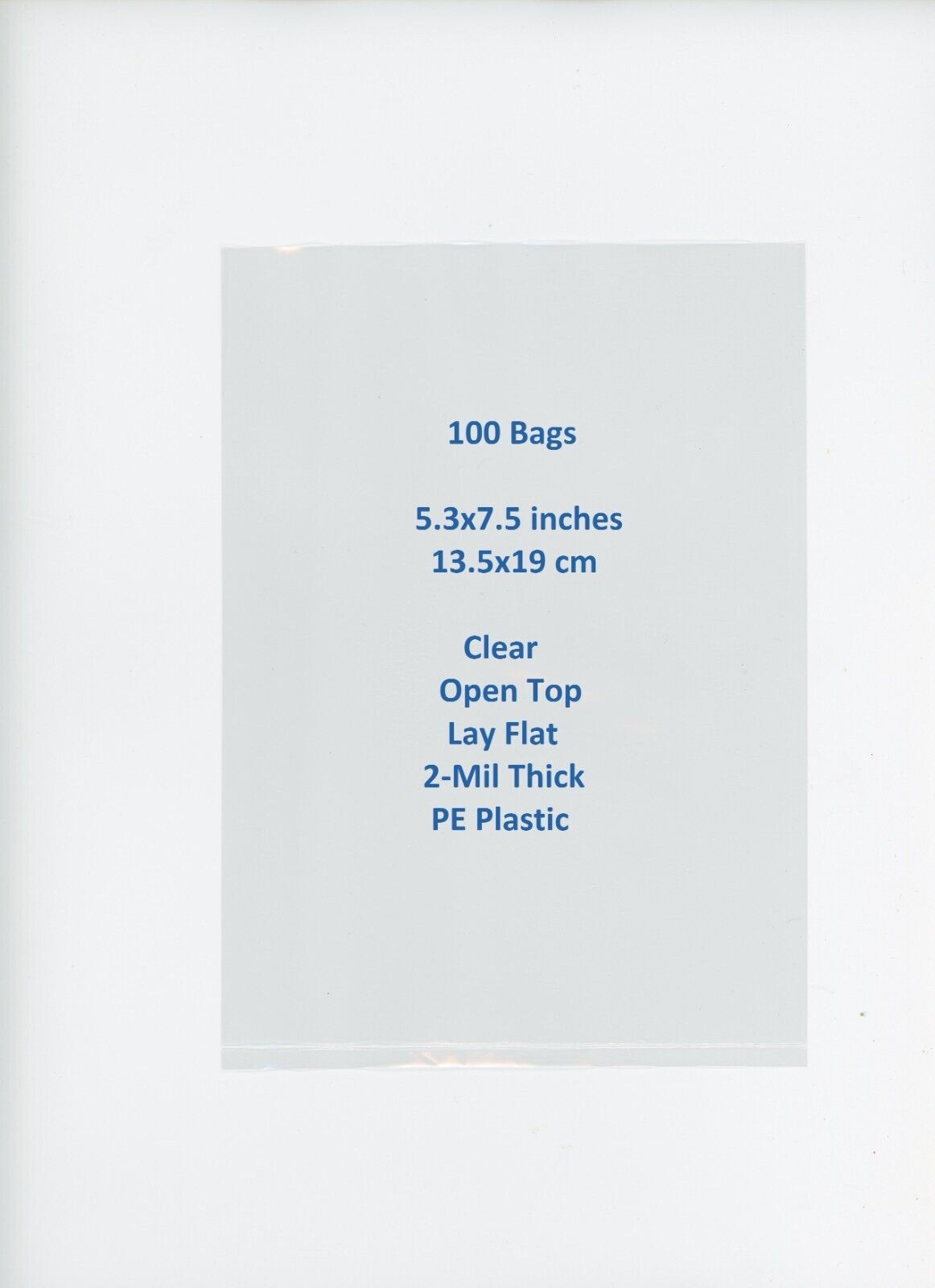 New! 100 5.3x7.5 Inch Clear PE Plastic Poly Bag Bundle - Flat - Open Top - 2-Mil