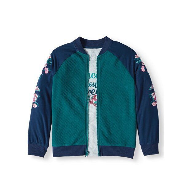 Wonder Nation Girl's Knit Bomber Jacket and Graphic T-Shirt, Blue Cove M(7-8)