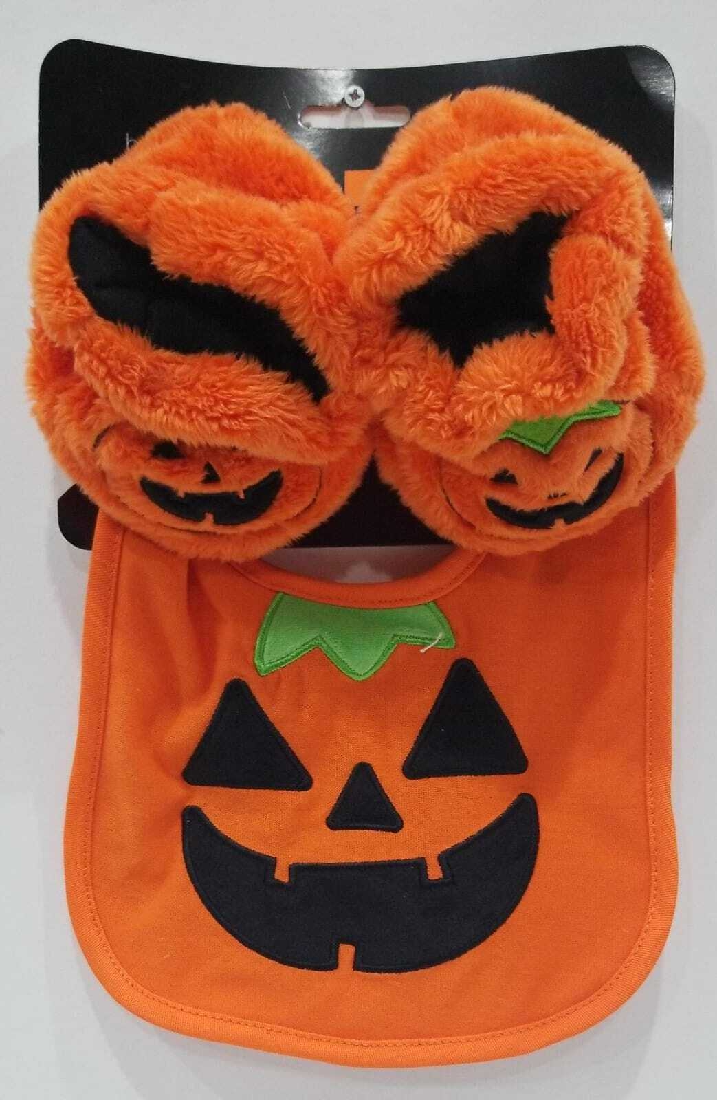 Happy Halloween Baby Booties And Bib Set, Orange, Size Bib 0-12M, Booties: 0-6M