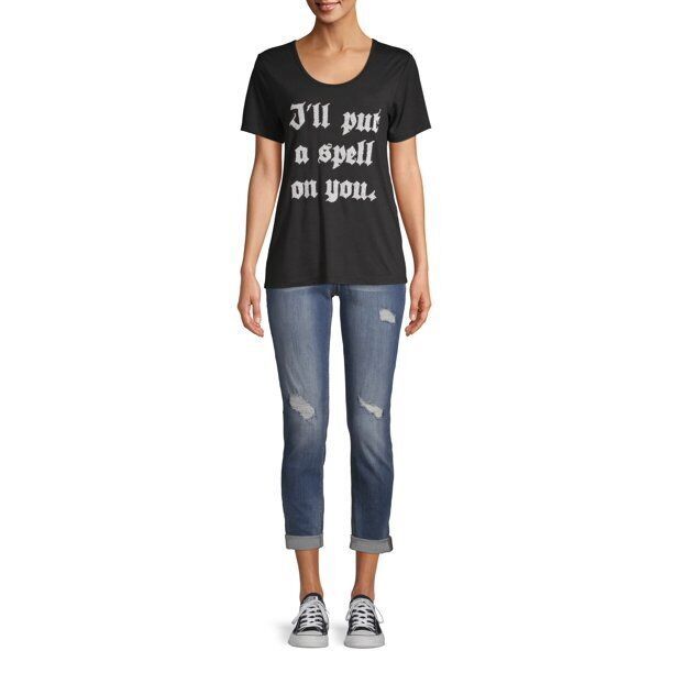 Made Right Junior's "I'll Put a Spell on You" Cape Shirt, Purple/Black L(11/13)