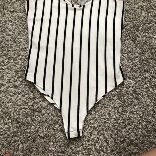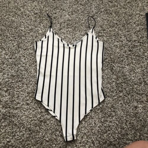 gaze xs body suit one piece snap button stripe thin spaghetti straps V Neck.