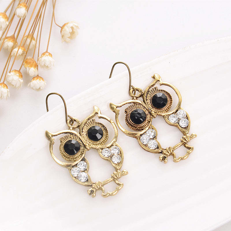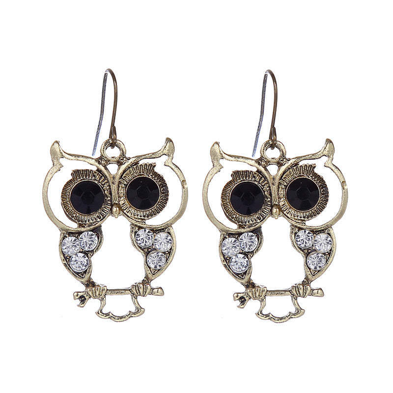 The wisdom of the owl translates into a stylish accessory for everyday wear in these chic Gold and Black Owl Earrings.
