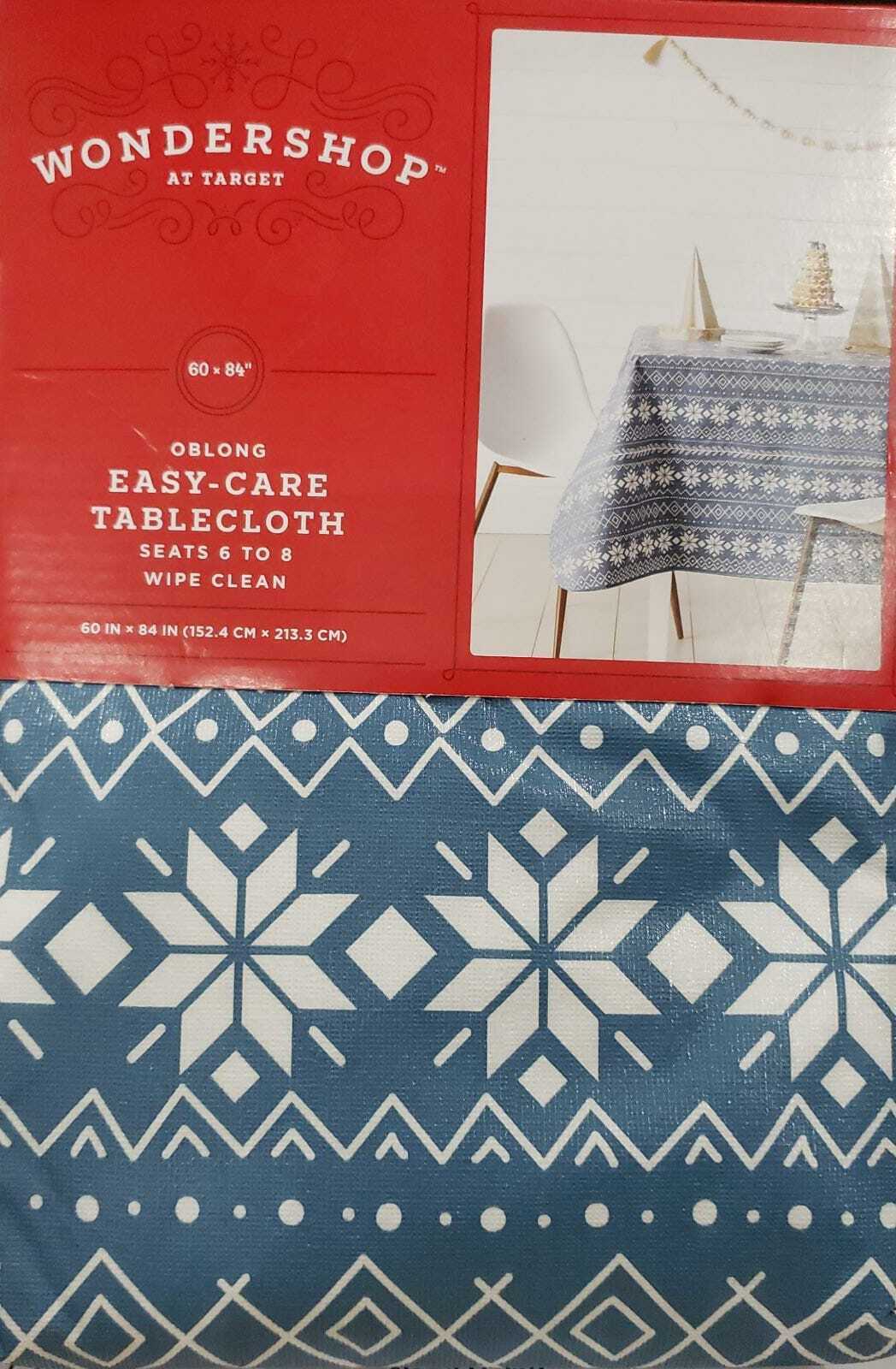 Wondershop Oblong Easy Care Tablecloth Seat 6-8 Wipe Clean Size 60" X 84" Blue