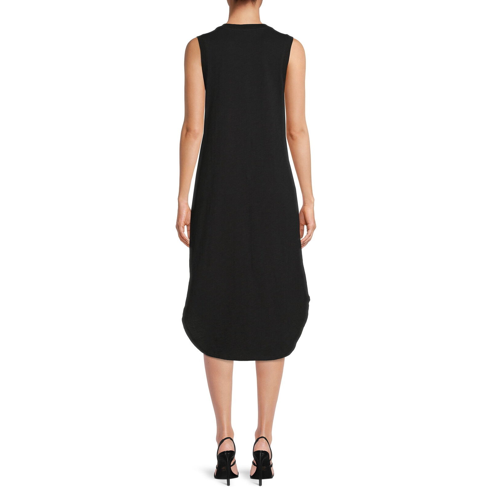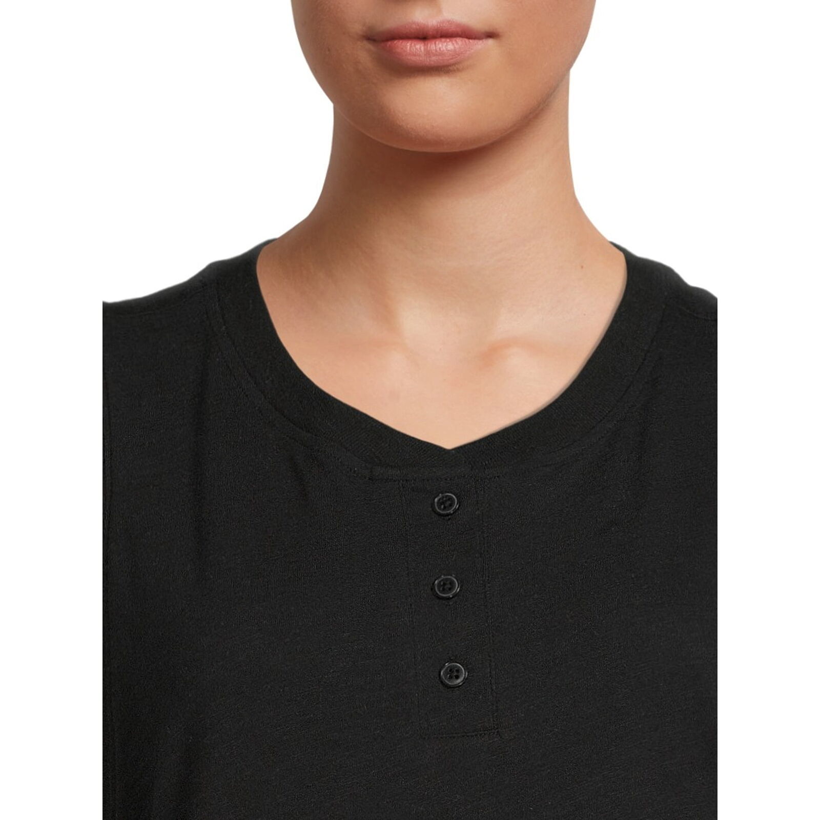 Time and Tru Women's Sleeveless Curve Hem Henley Midi Dress Size L (12-14) Black