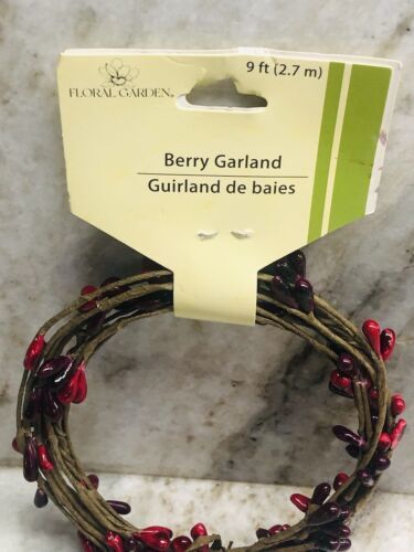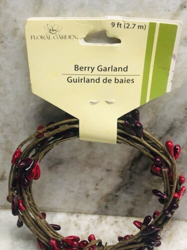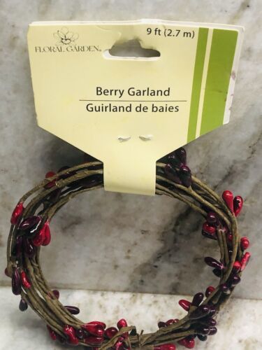 ShipN24Hours.New-Floral Gardens. Red Berry Garland. 9 ft. 2.7 m..