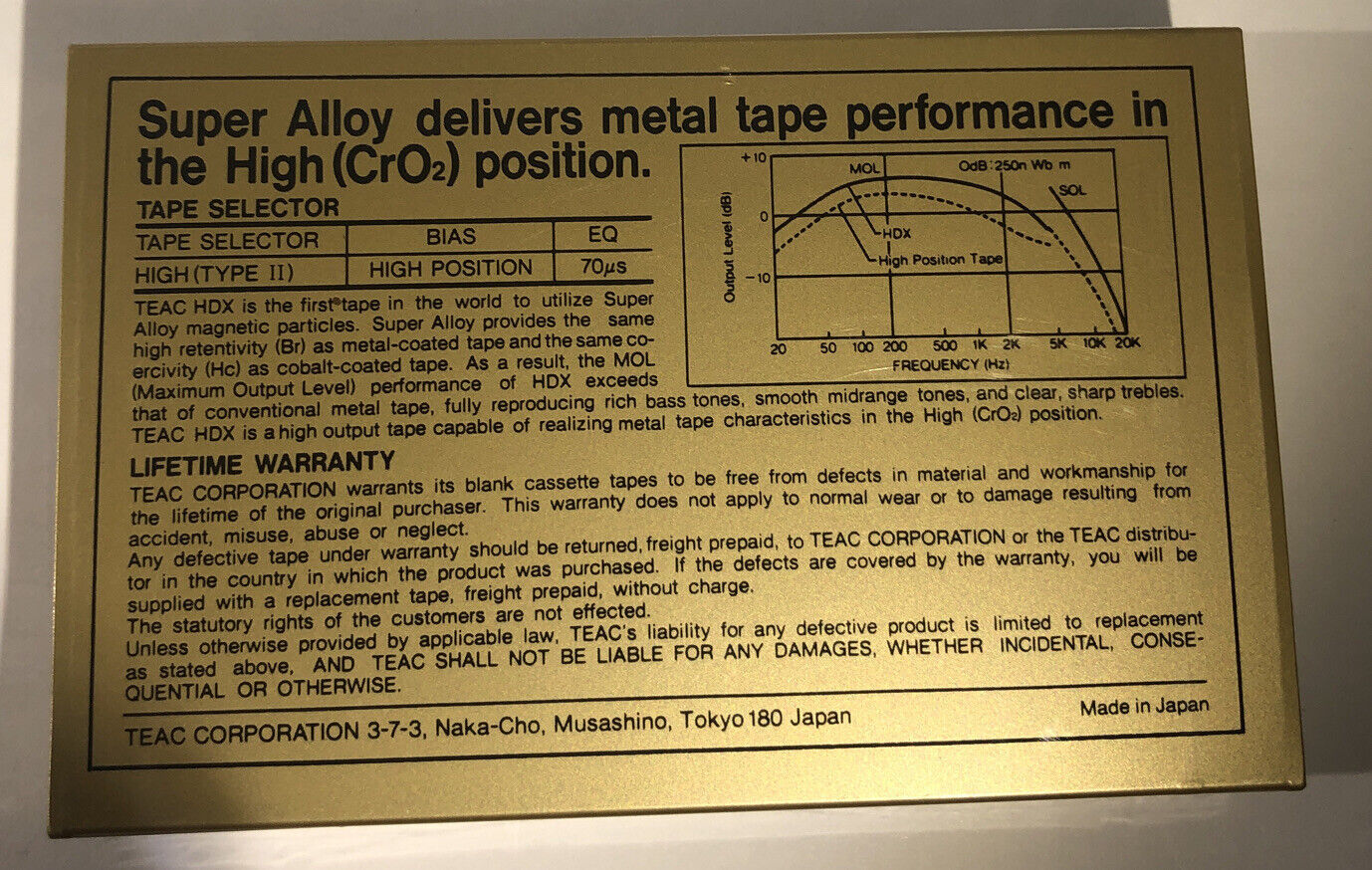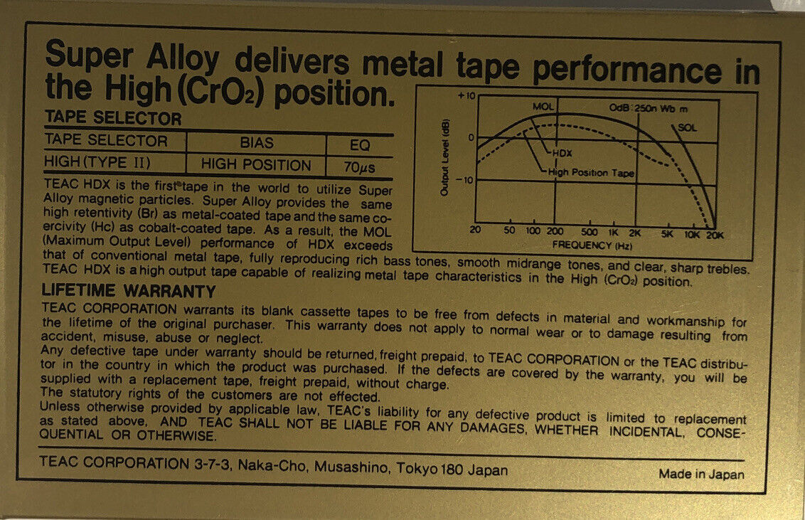 You Will Receive 1 ea TEAC hdx 90 TYPE II JAPAN CASSETTE TAPE-SUPER RARE VINTAGE-BRAND NEW SEALED. Condition is "New". Shipped with USPS First Class.