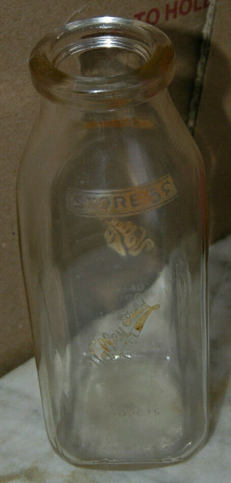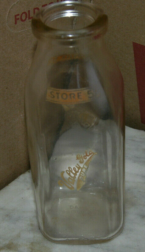 Vintage Valley Gold Pure Milk Bottle Pint Clear Store 5 Cent